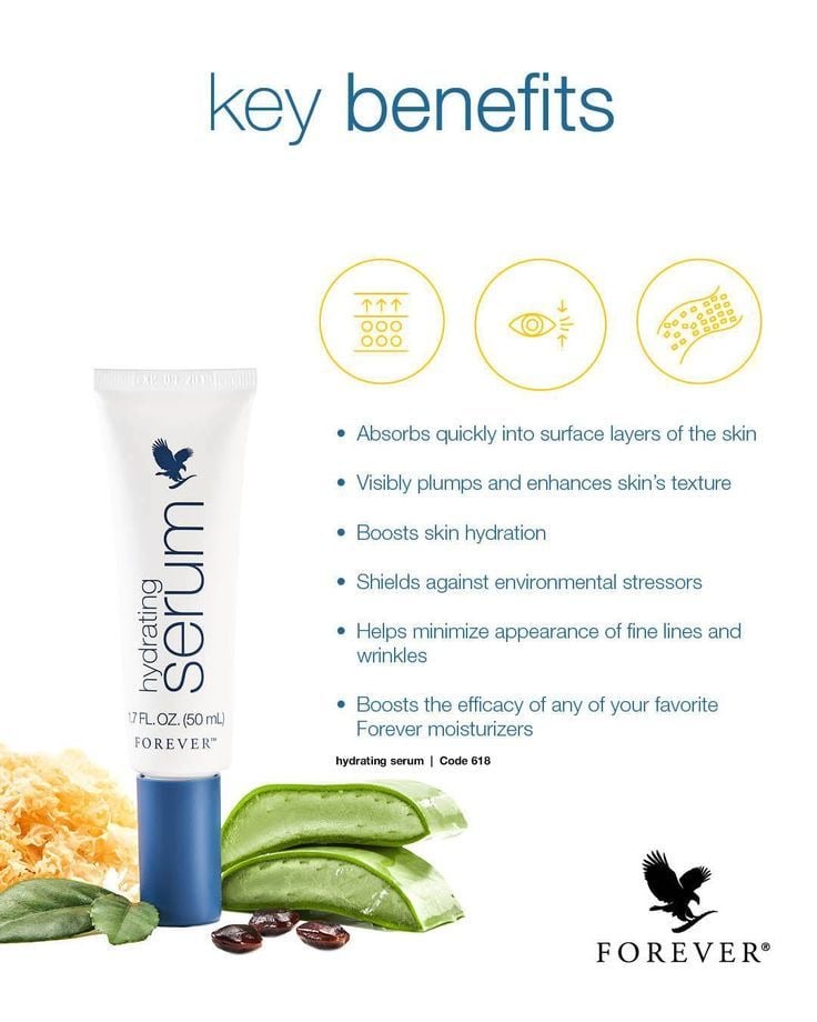 Use hydrating serum both day and night with your favorite Forever moisturizer to boost skin hydration and minimize the appearance of fine lines and wrinkles!
