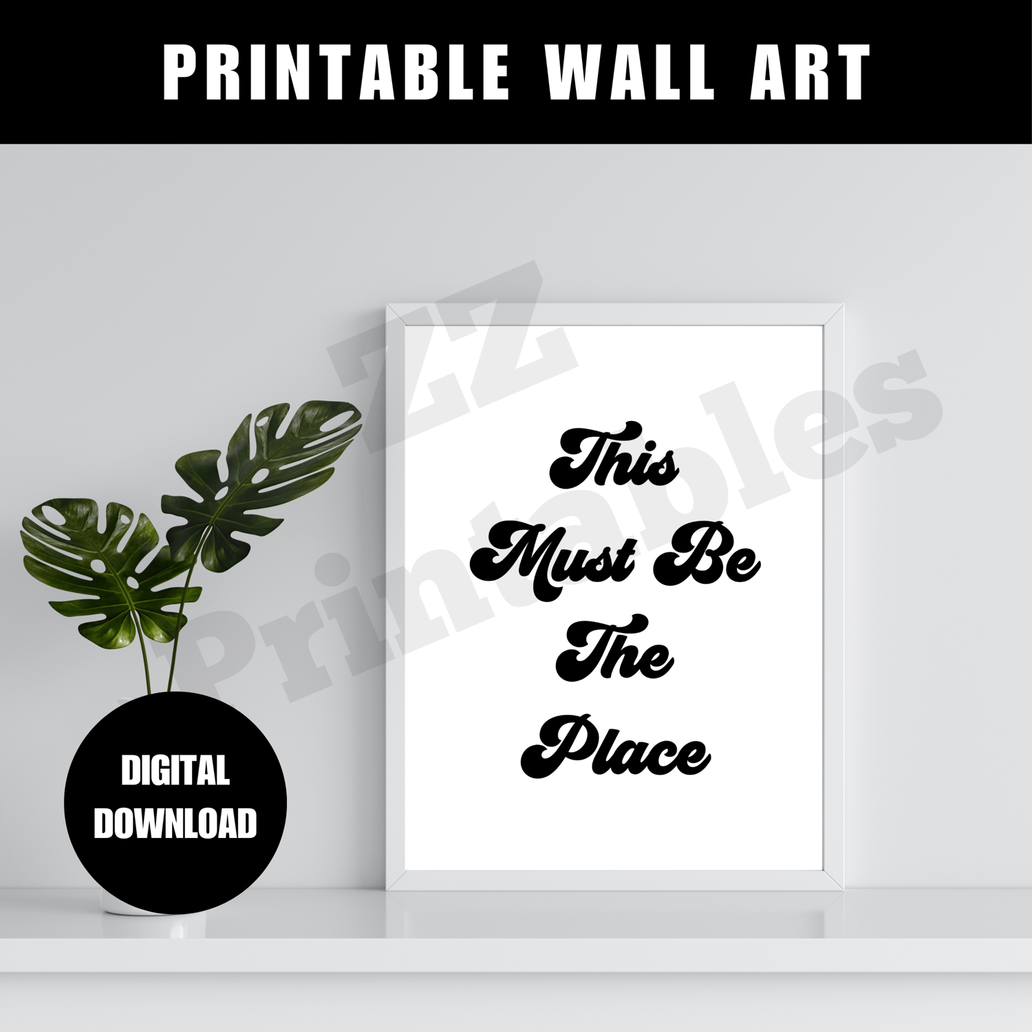 This Must Be The Place Print Poster White Black Trendy Retro Hippie Living Room College Dorm Decor Printable Wall Art Digital Download JPEG