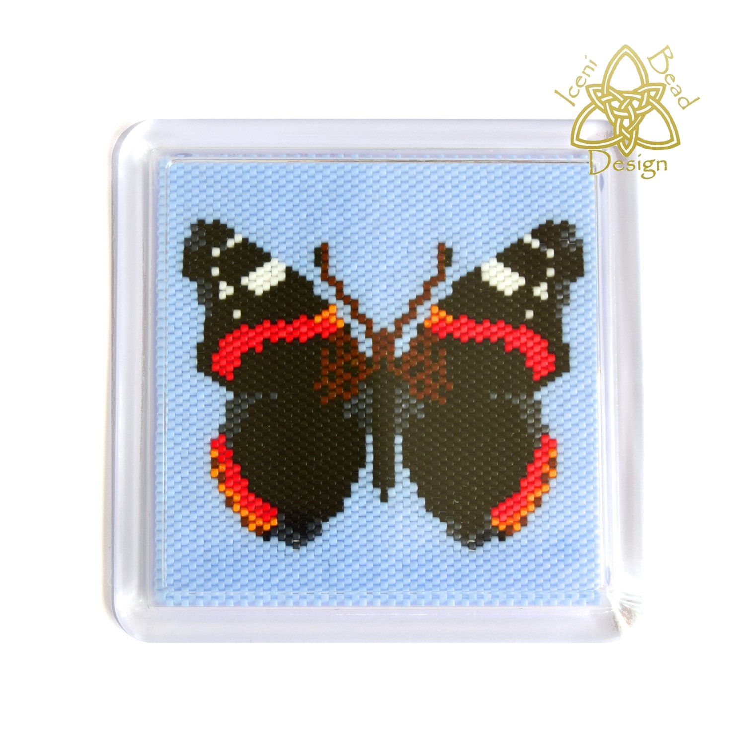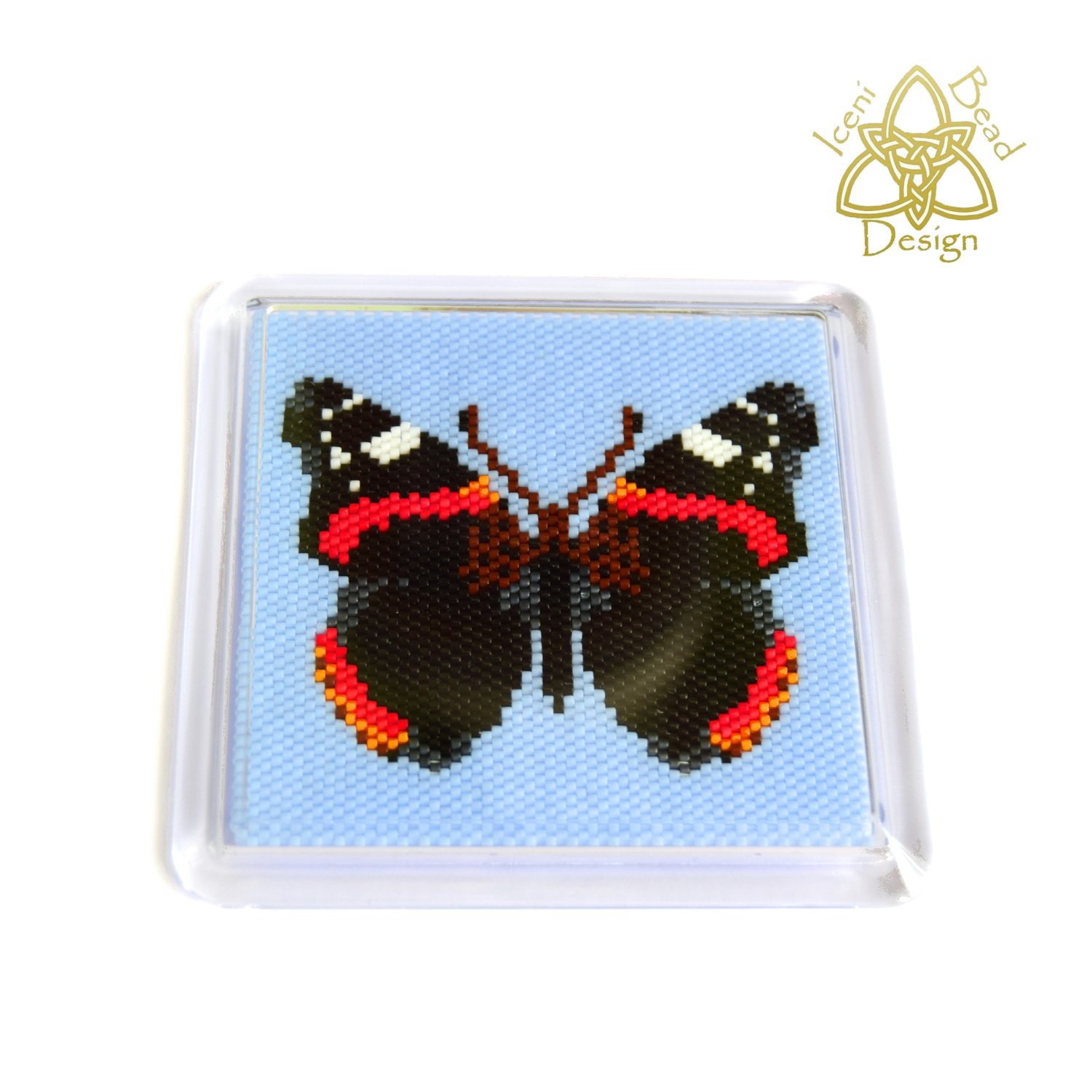 Butterfly Coaster, Red Admiral Butterfly Peyote stitch Beaded Coaster
