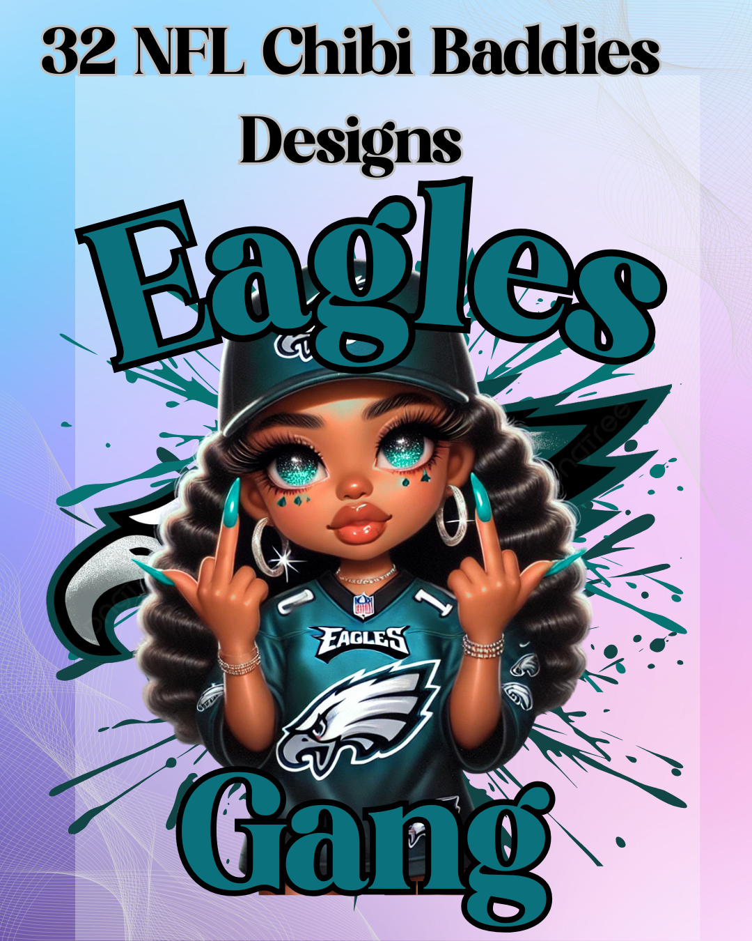 NFL Baddie Gang | 32 Team Digital Bundle | Chibi Baddie PNGs
