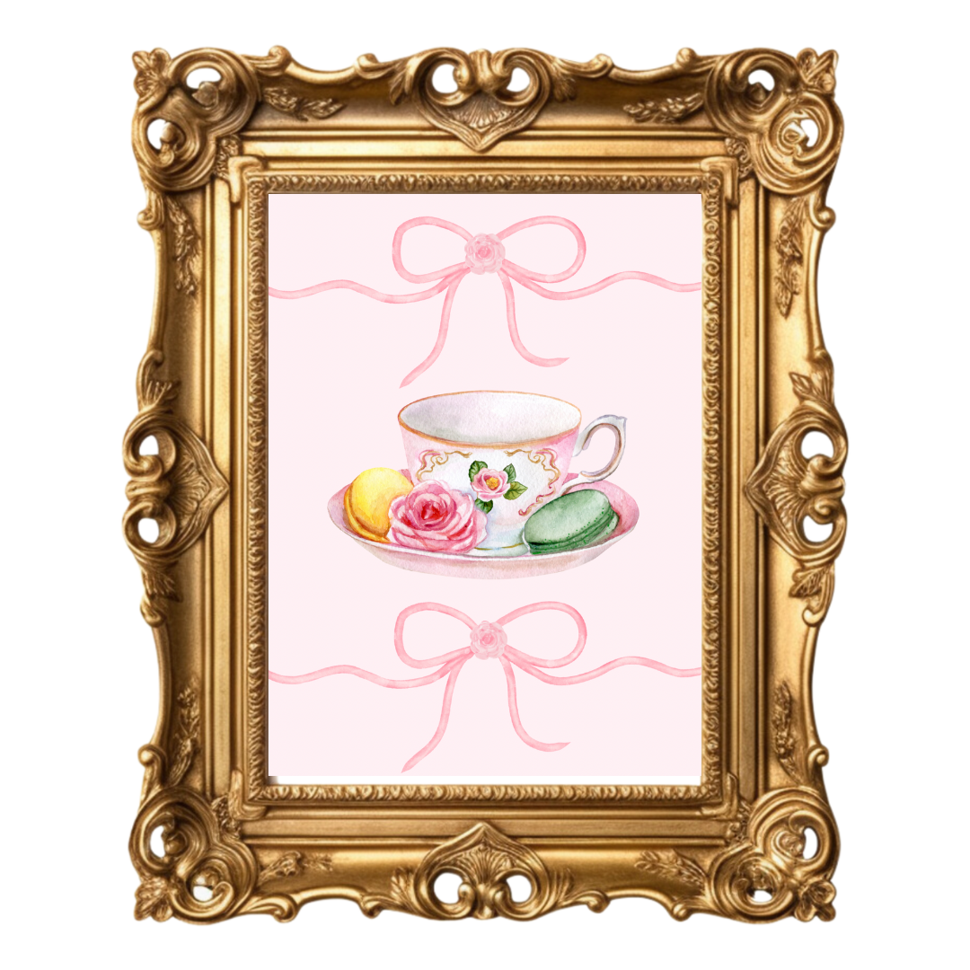 Lovely tea time poster set (3) (white and light pink background included)