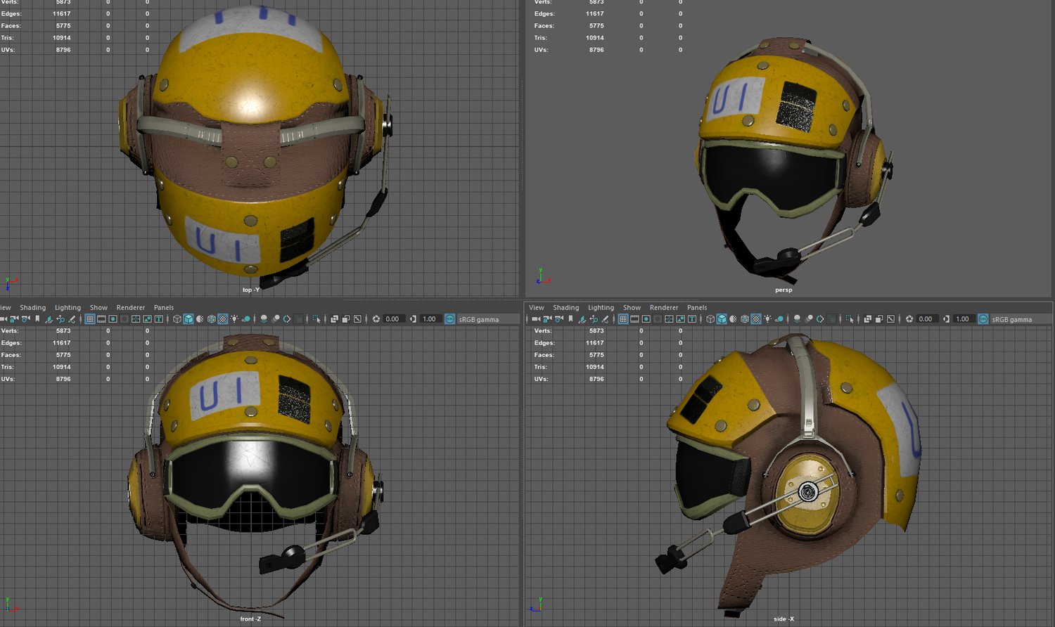 This type of flight deck helmet is standard protective gear used by crew members aboard US Navy aircraft carriers. Each color indicates a specific job role (e.g., yellow for aircraft directors, green for maintenance, etc.).