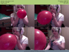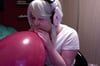 Cute gamer girl Rian blows up 2 balloons and pops them with a hobby knife