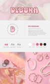 Debora's Retro feminine logo and premade brand kit epitomize a bold, playful feeling, designed specifically for Handmade Jewelry Business. Inspired by feminine pink aesthetic, this branding kit features a feminine bold display font logo design that highlights the artistic feeling. The canva logo template and brand kit template, adorned with colorful feminine tones,like pink, pastel pink, and violets, is perfect for brands looking to convey sophistication and outstanding playfulness.