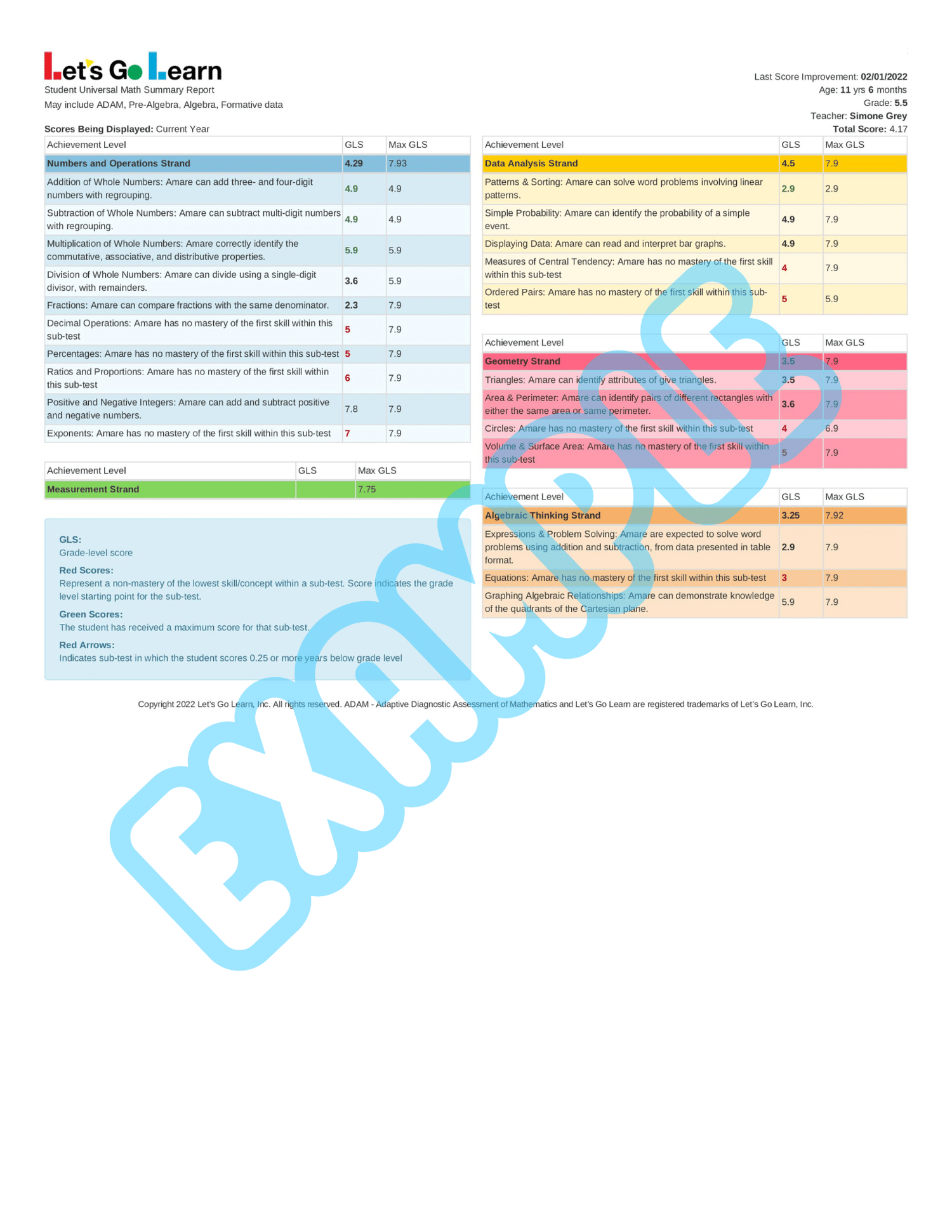 + Assesses students in 11 Algebra domains.