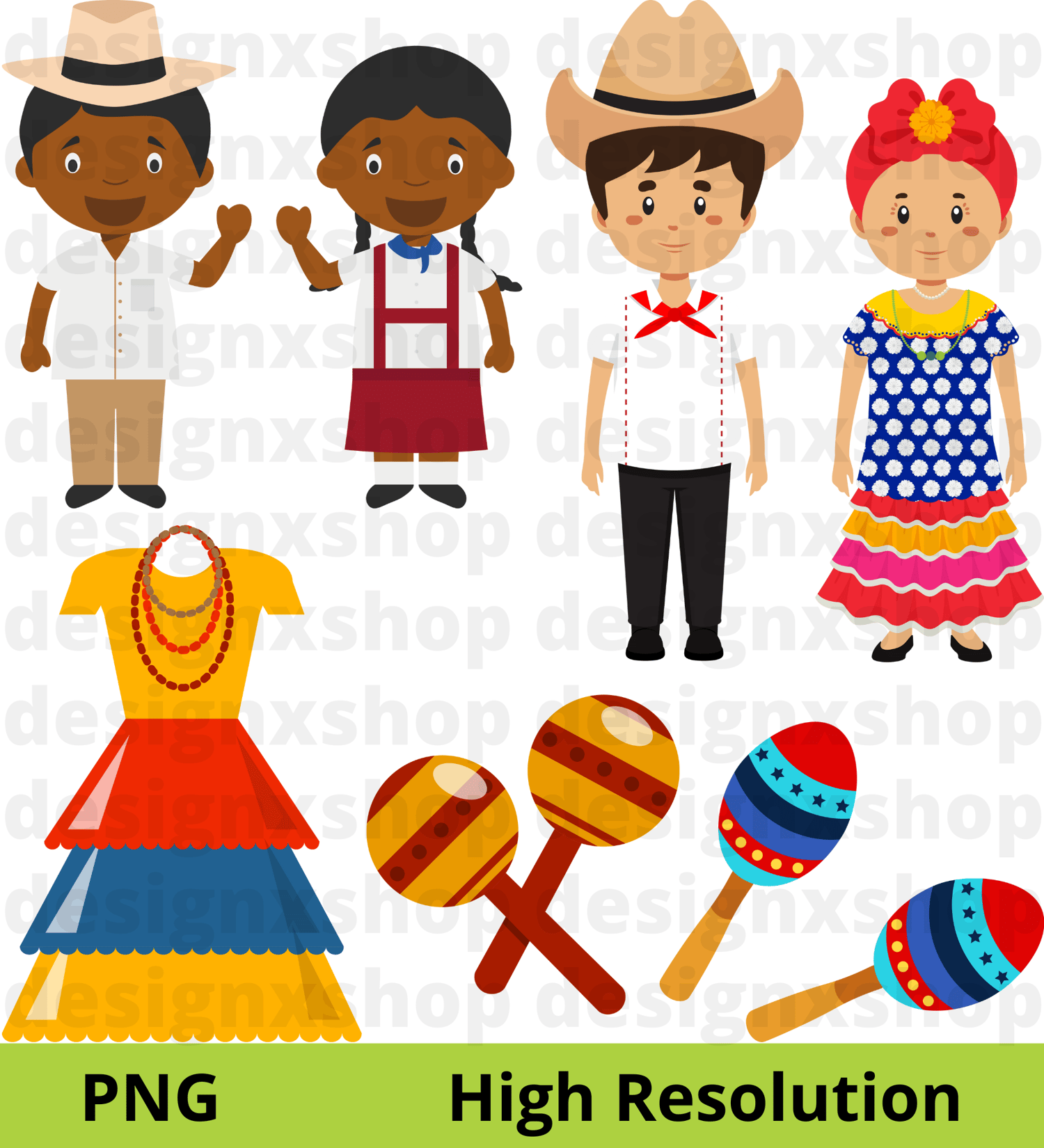 Cuba Clipart, Havana Clipart, Travel clipart, Country clipart, Cuban clipart, Kids, traditional costume, Instant Download SVG and PNG