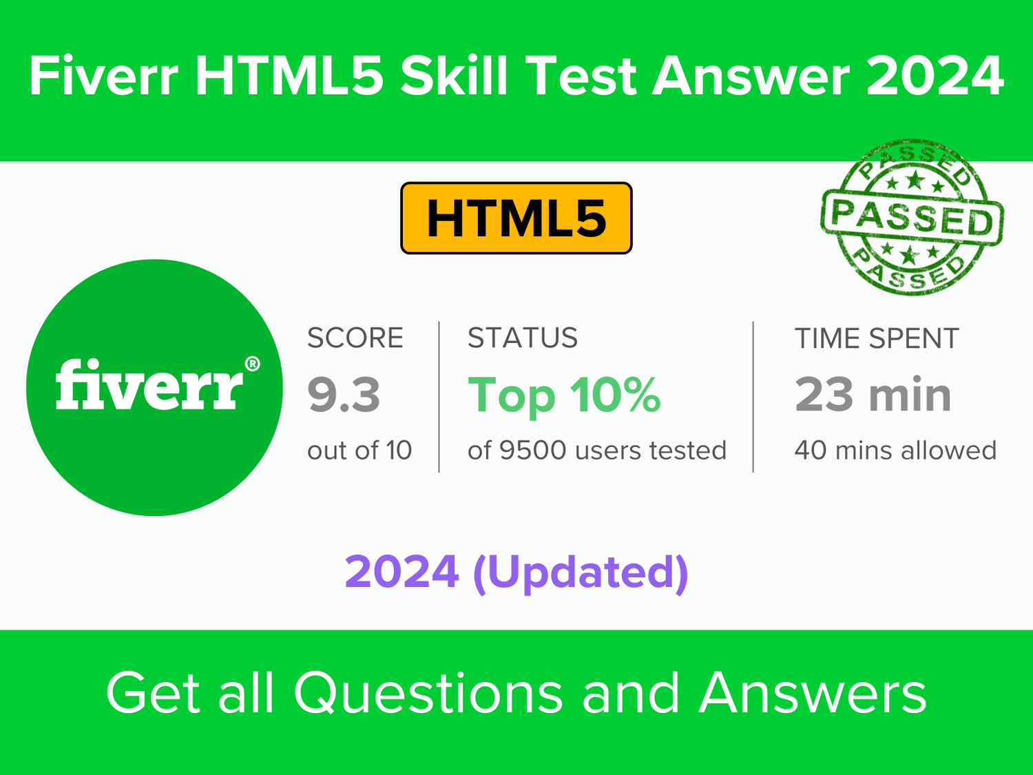 Looking to ace the Fiverr HTML5 Skill Test and stand out as a skilled HTML5 developer? This 2024 updated answer key gives you everything you need to score high and secure a place among the Top 10% of test-takers on Fiverr. Boost your profile and make a strong impression on clients seeking HTML5 expertise!