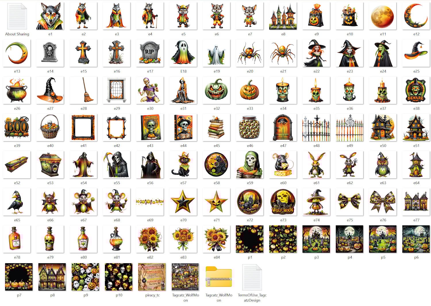 Halloween with wolves baying at the moon! 84 elements and 10 matching papers. AI product. Tagger size.. Personal use only. Not all shown.