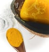 Harnessing the power of turmeric, known for its anti-inflammatory and antioxidant benefits, this soap helps to promote healthy, glowing skin with every use. Indulge in the soothing aroma of tea tree oil, renowned for its antibacterial and antifungal properties, while vitamin E oil works to moisturize and protect against environmental stressors. Treat yourself to the luxury of nature-inspired skincare and uncover a radiant complexion, naturally.