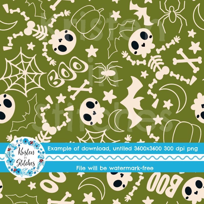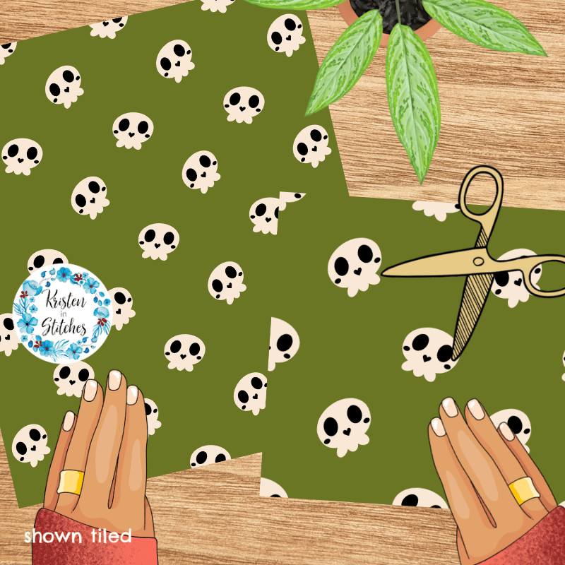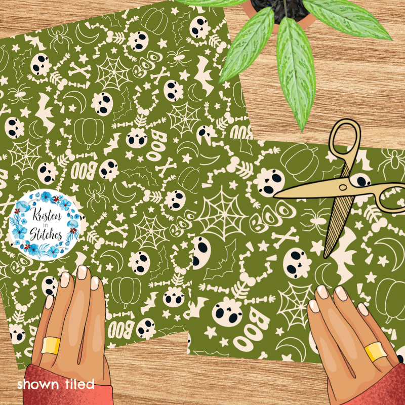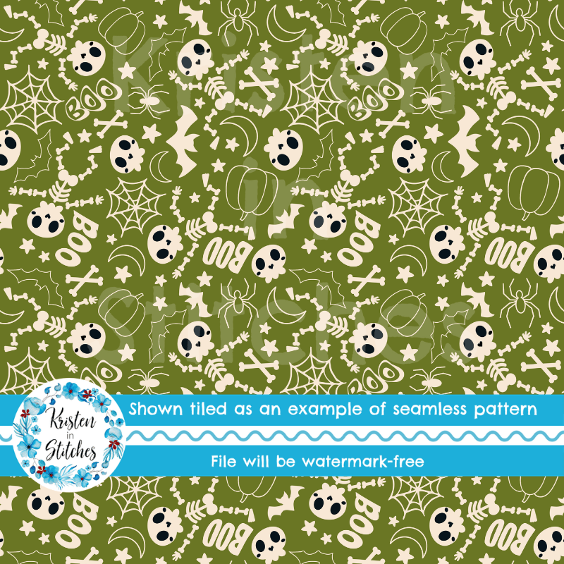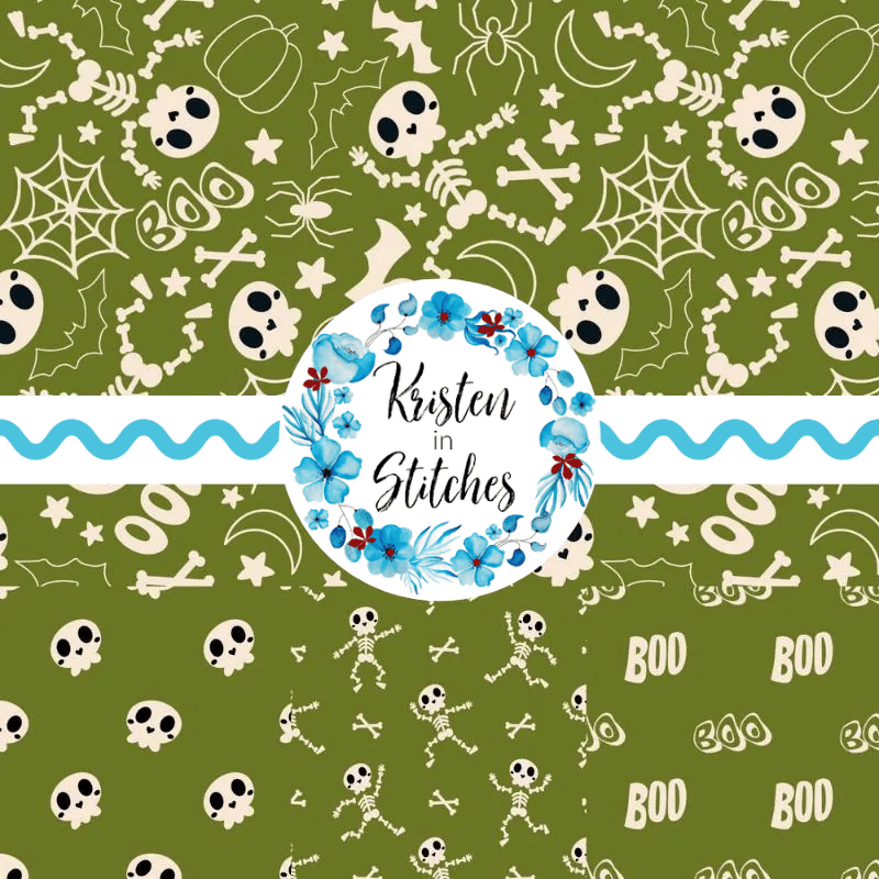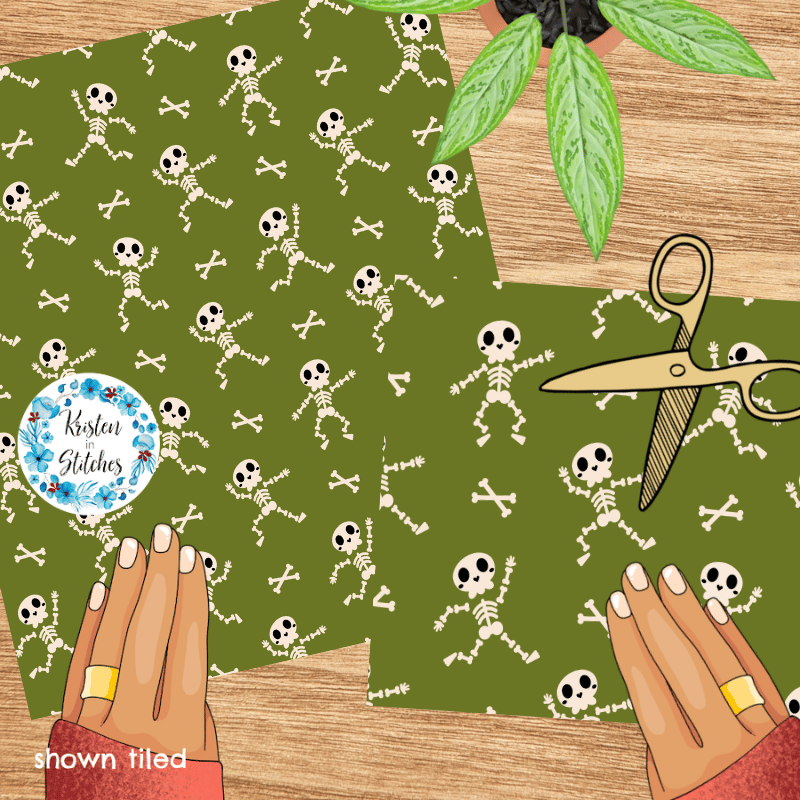 Friendly Halloween Skeletons Seamless Pattern Set of 4, Green