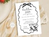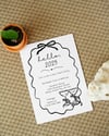 NYE Party Evite, Canva Template Evite, Floral Theme New Year's Party Invitation. Digital Invitation, Coquette Black and White Handwritten Minimalist Theme
