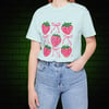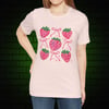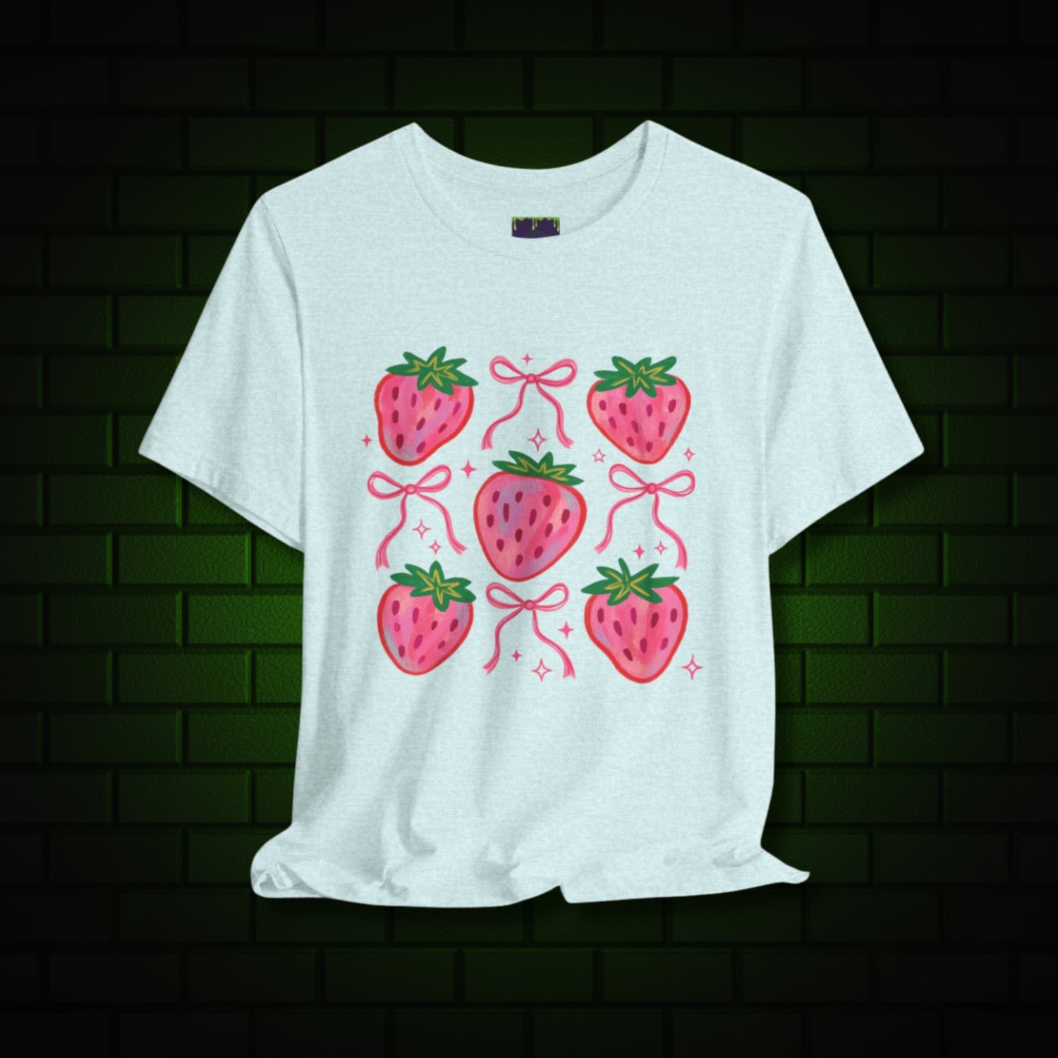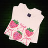Coquette Strawberry Bow T-Shirt – Pastelcore Aesthetic Tee in Soft Pi nk, White & Heather Prism Ice Blue