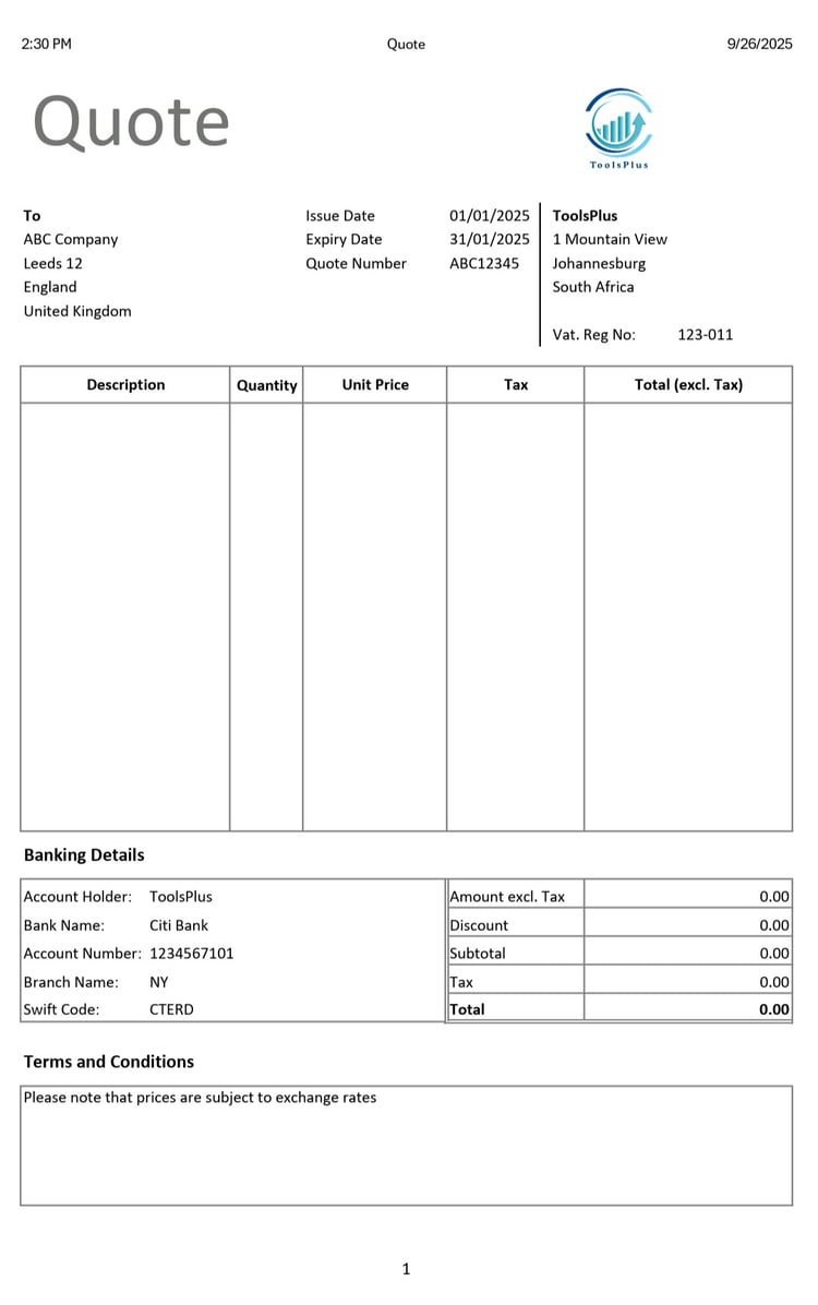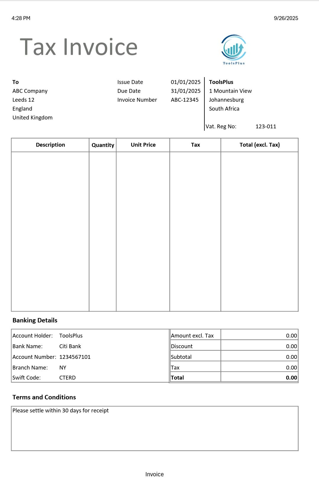This Microsoft Excel invoice template makes it easy for businesses to generate invoices, easily save as PDF or print them. It comes with customer registry ability and drop-down menus in the invoice, as well as tax calculator.