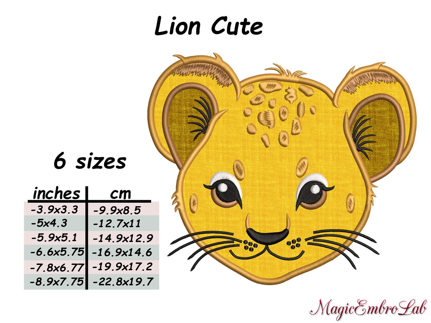 Cute Lion APPLIQUE, 6 sizes, Instant Download
