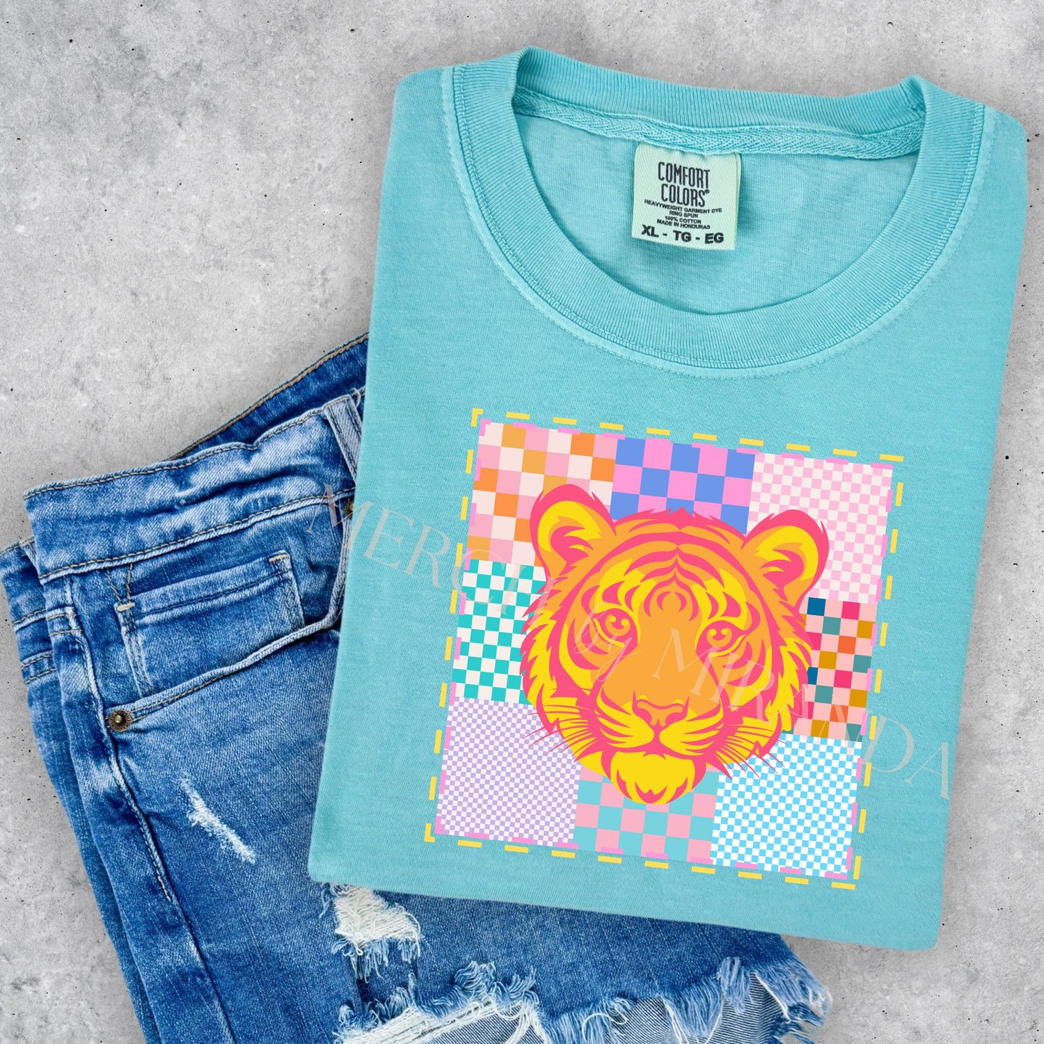 Tiger Mascot - Tigers - Checkered - Colorful - Digital Download