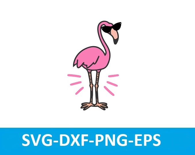 77 Pink flamingo with glasses funny drawing svg png eps dxf