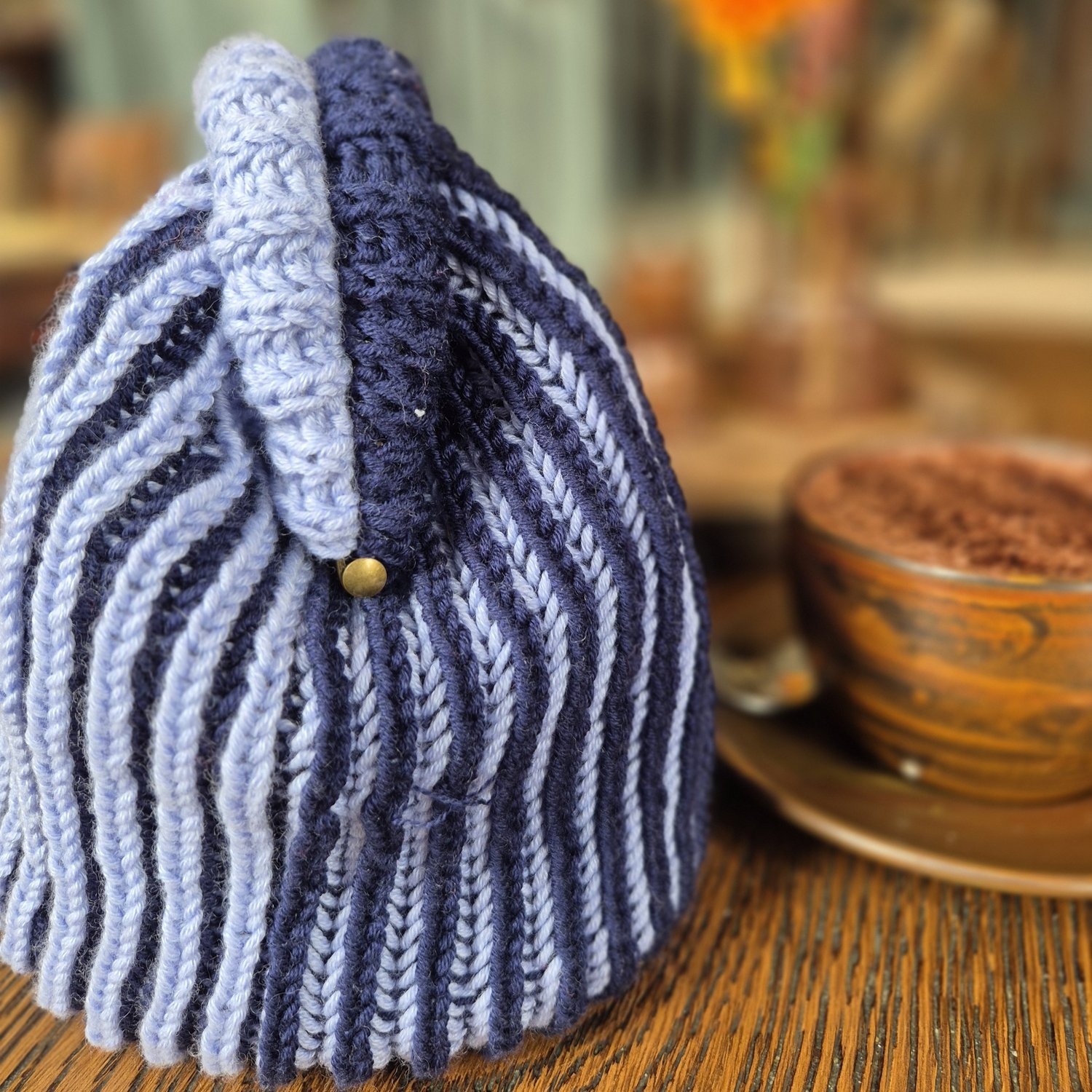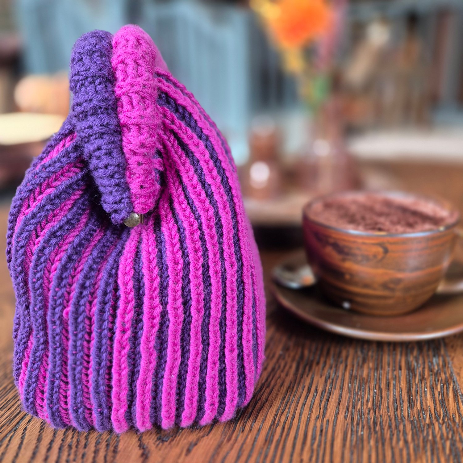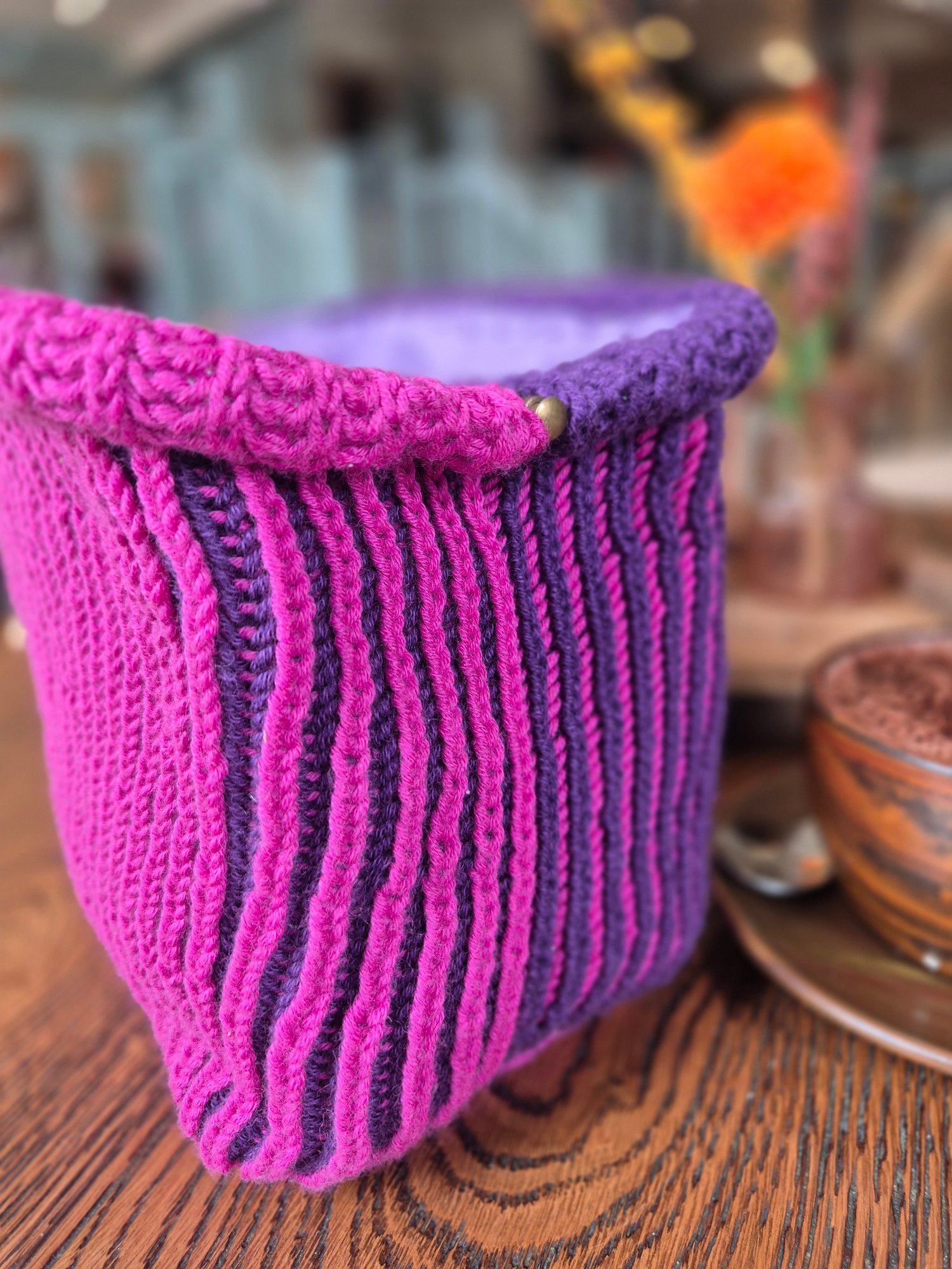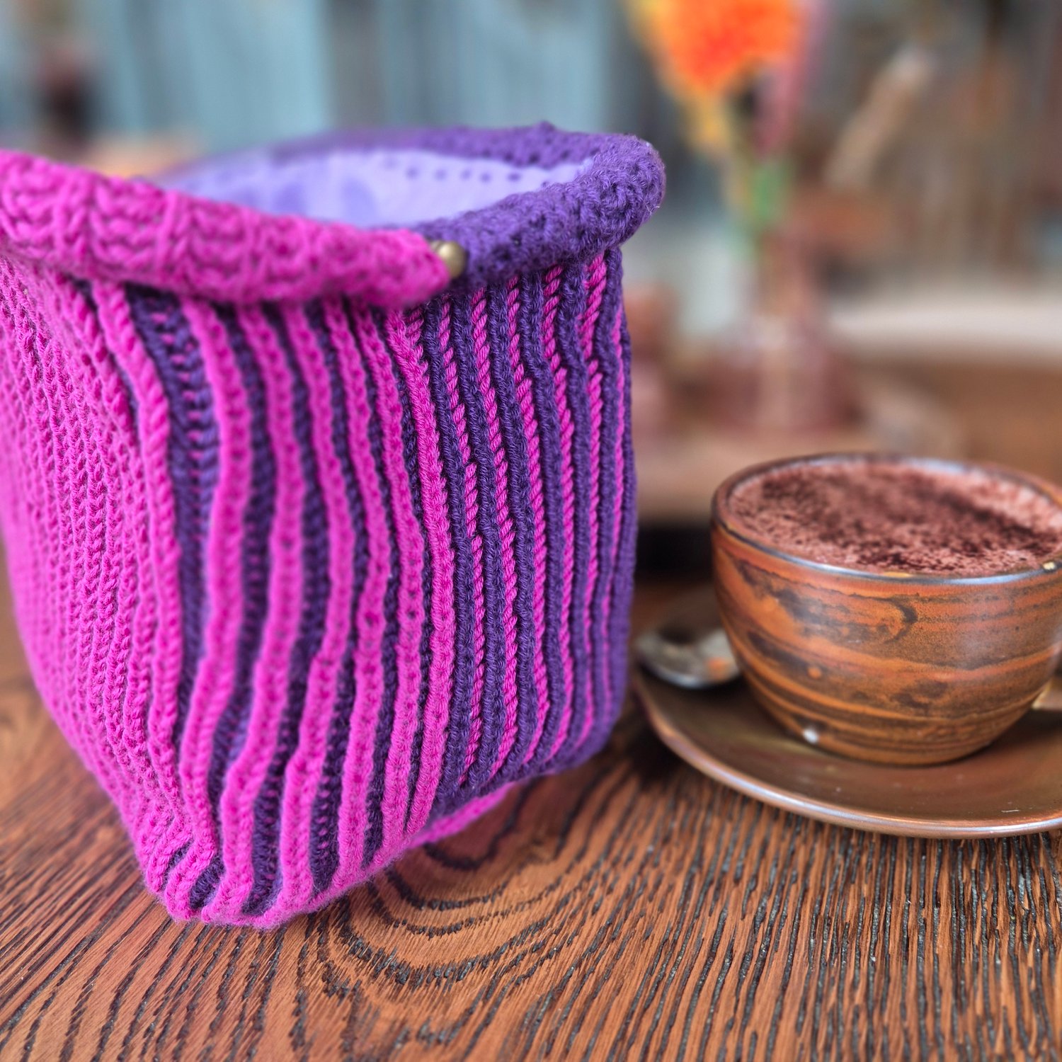 The Brioche Clutch can be used to hold your essentials for running errands, for a night out or as a project bag. The metal frame and felt lining (see pattern notes) allows the bag to sit upright when open. Perfect for carrying your knitting project, your day or evening essentials such as purse, phone, lipstick etc. See page 2 of the pattern (or below) for links to several tutorials including how to knit brioche and how to add the lining.