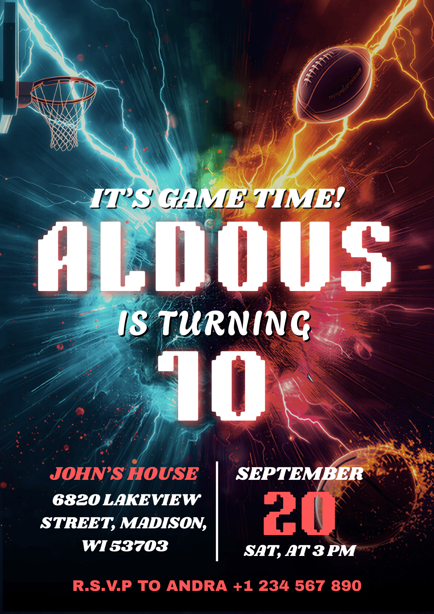 With a modern, high-energy design, this template helps you create a professional-looking invitation in minutes using Canva — no design skills required.