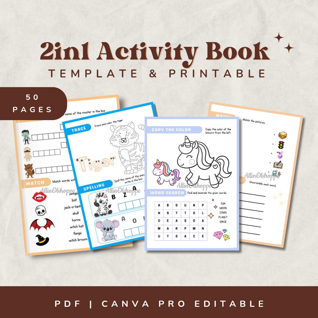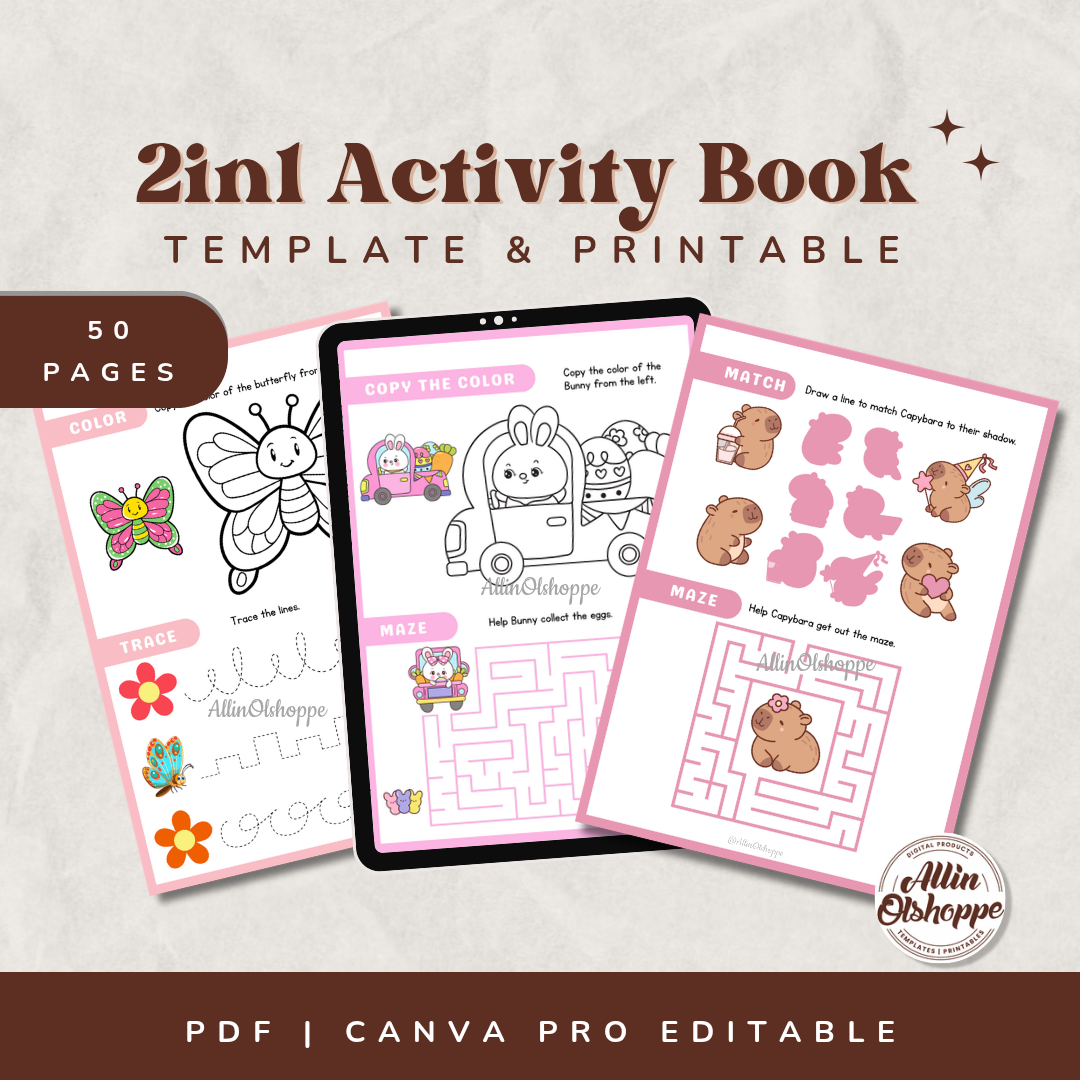 50 Pages 2in1 Activity Book for Kids | Editable | Printable