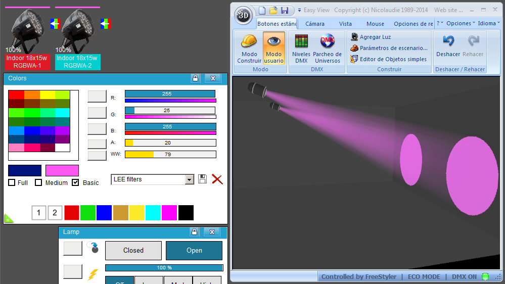 Esta Librería SSL2 está optimizada para trabajar con Magic 3d Easy View. Es decir para ver una representación 3D de las secuencias que estemos realizando con Freestyler, QLC+ o cualquier otro soft que se conecte con Magic 3d.