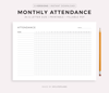 Monthly Attendance Log, Landscape, Printable & Fillable, A4/Letter Size, Instant Download