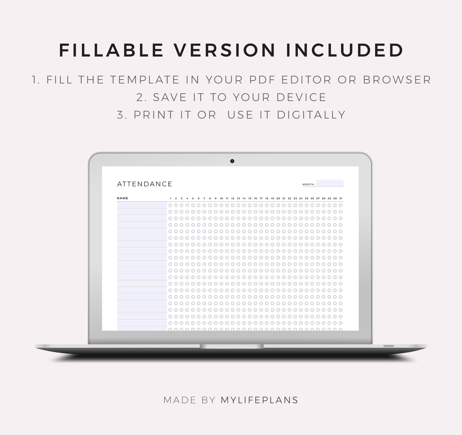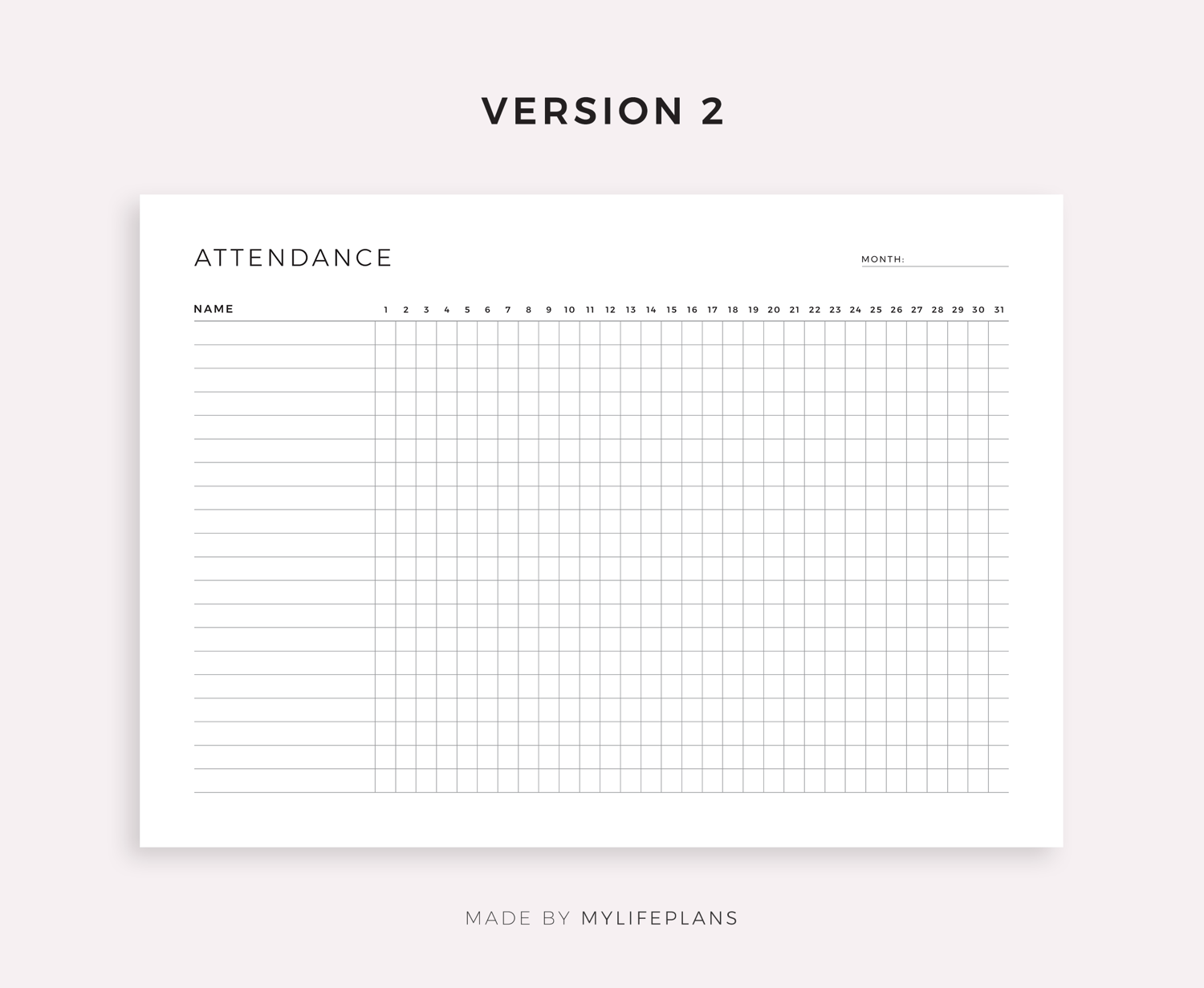 This is a printable monthly attendance log — just download, print, and start using it right away.