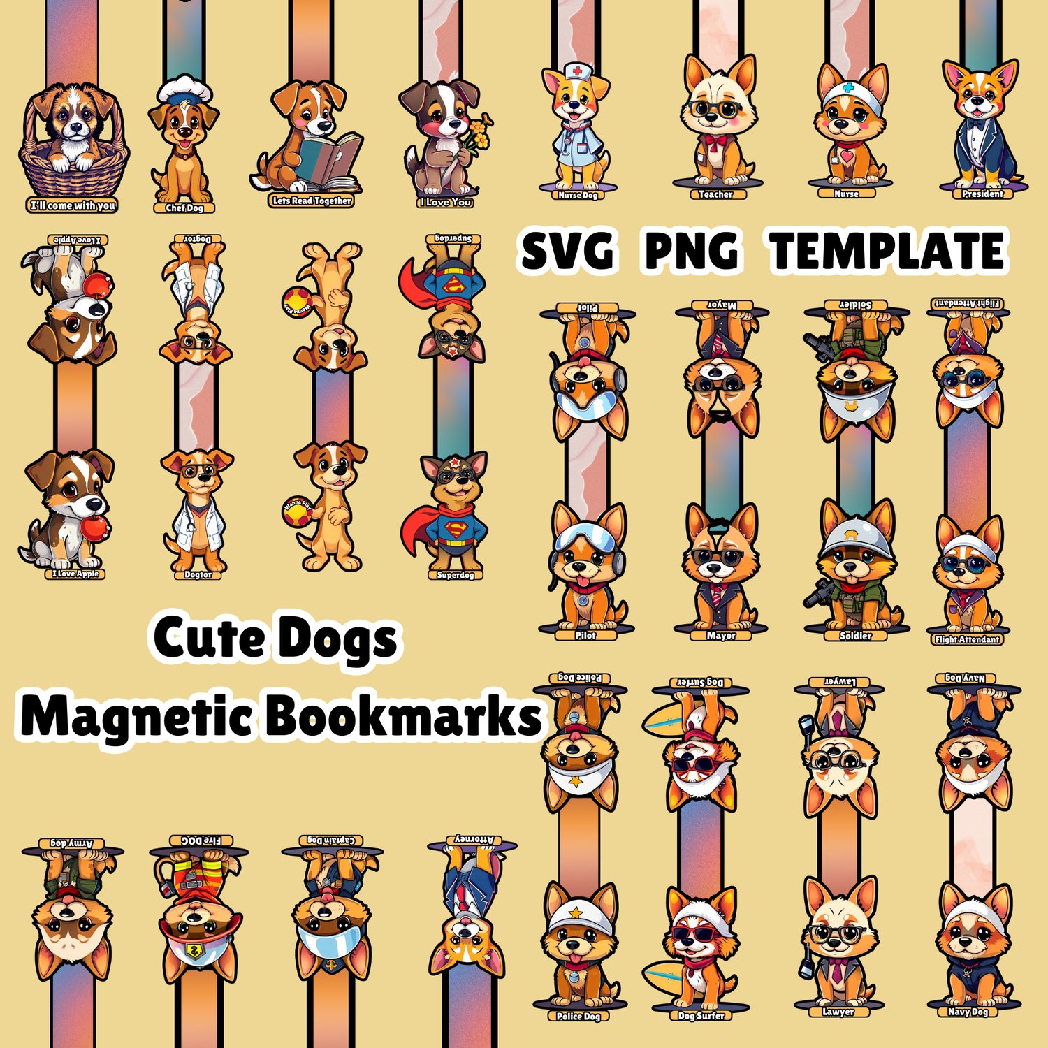 Looking for a fun and functional Magnetic bookmark or book page holder that adds a bit of charm to your reading routine? Look no further! This bookmark PNG set is designed for all book lovers, dog lovers, teachers and DIY crafters, offering both practicality and style. With a cute dogs design, it serves as the perfect book mark or page holder, keeping your spot in any book with ease.