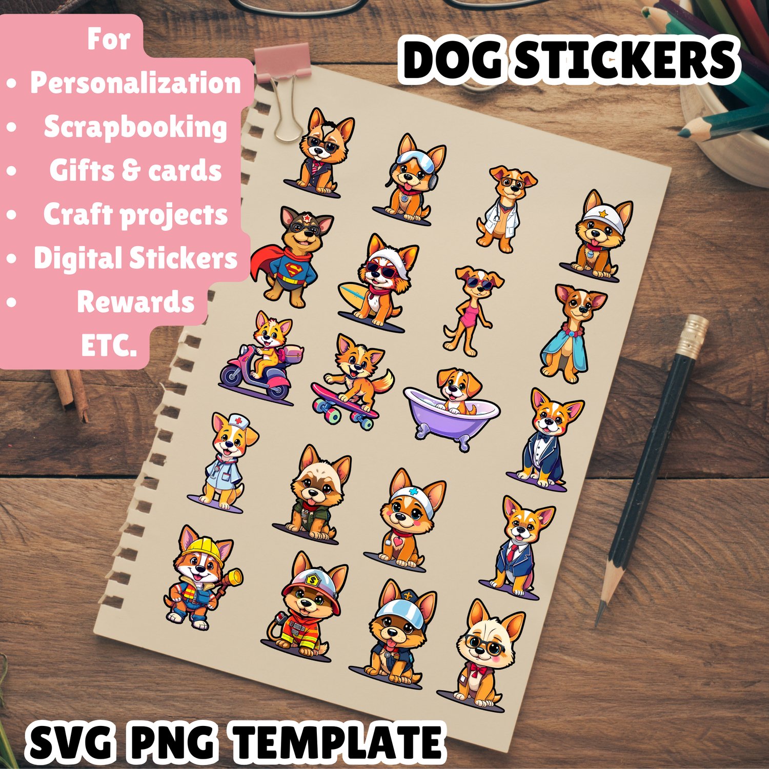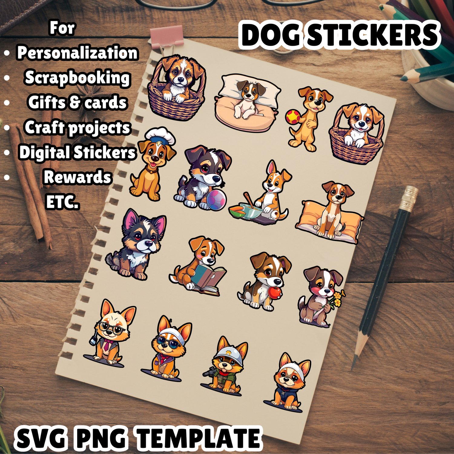 28 Bookends Book Page Holder, Magnetic Bookmark for Teacher, 44 Dog Stickers PNG SVG Template for Scrapbooking, Junk Journal, Dog Mom Gift
