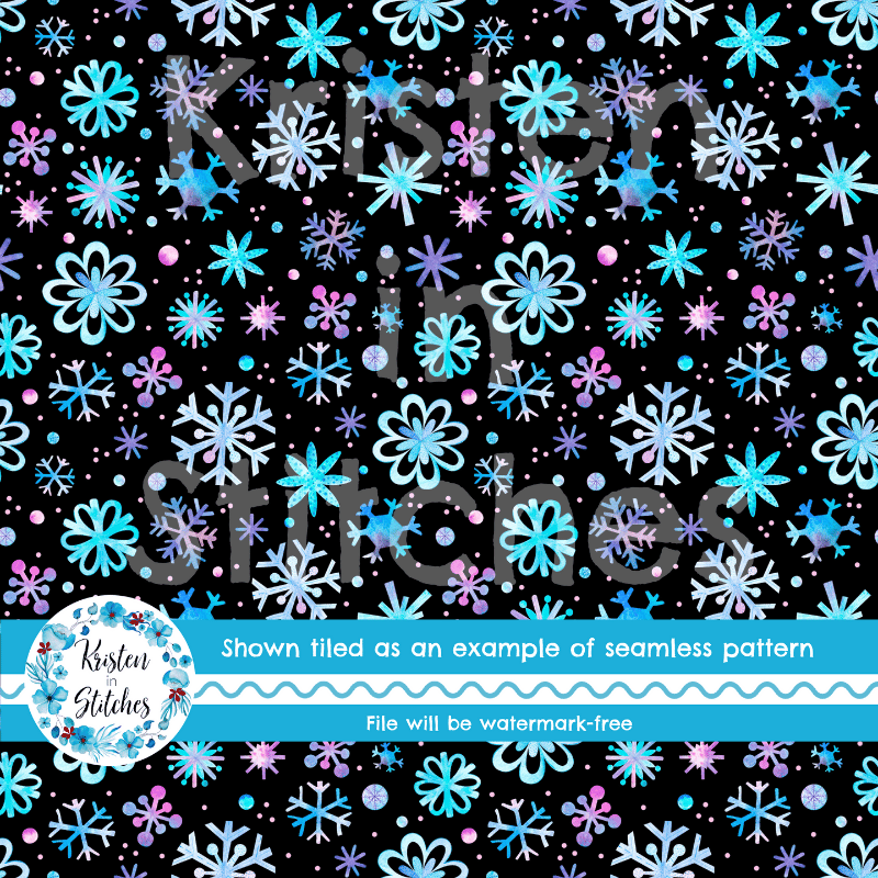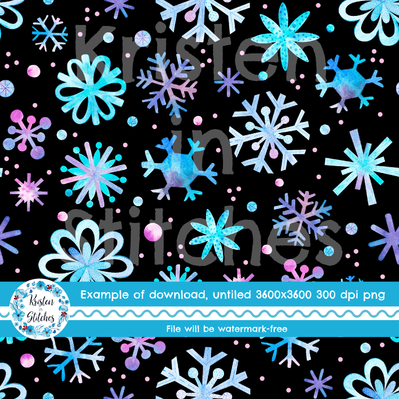 Pretty Watercolor Snowflakes Winter Holidays Seamless Pattern