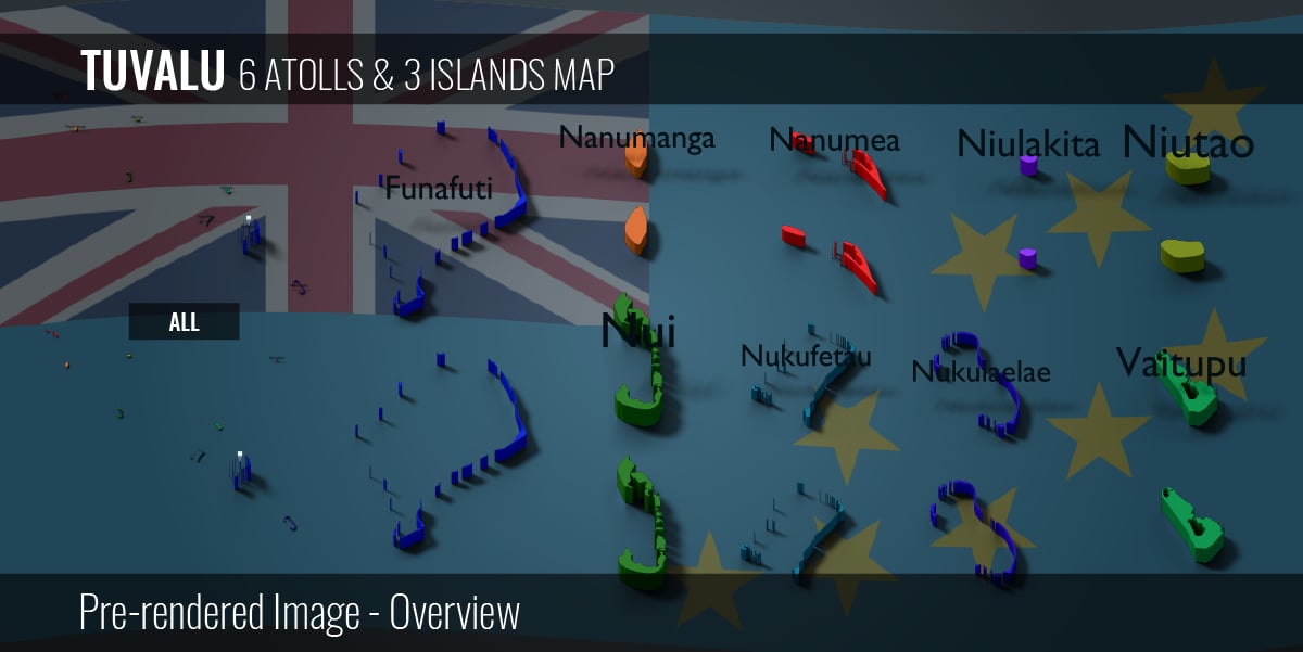 Tuvalu - 6 Atolls & 3 Islands Map (3D + Pre-rendered Images)