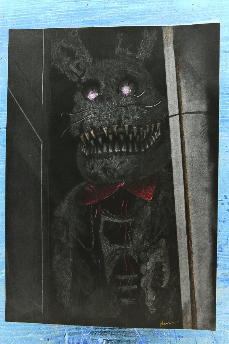 Negative filter hand drawing of bonnie from fnaf