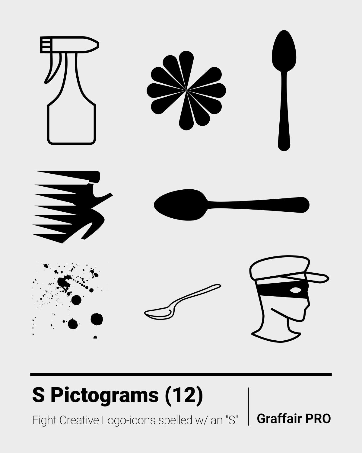 S Pictograms (12): The 12th set of 8 pictograms, each beginning with an "S".