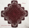 Pattern consists of 31 rounds and measures 13 x 13 inches, used around 400 yards of size 20 mercerised cotton thread with 1.75 mm steel hook.
