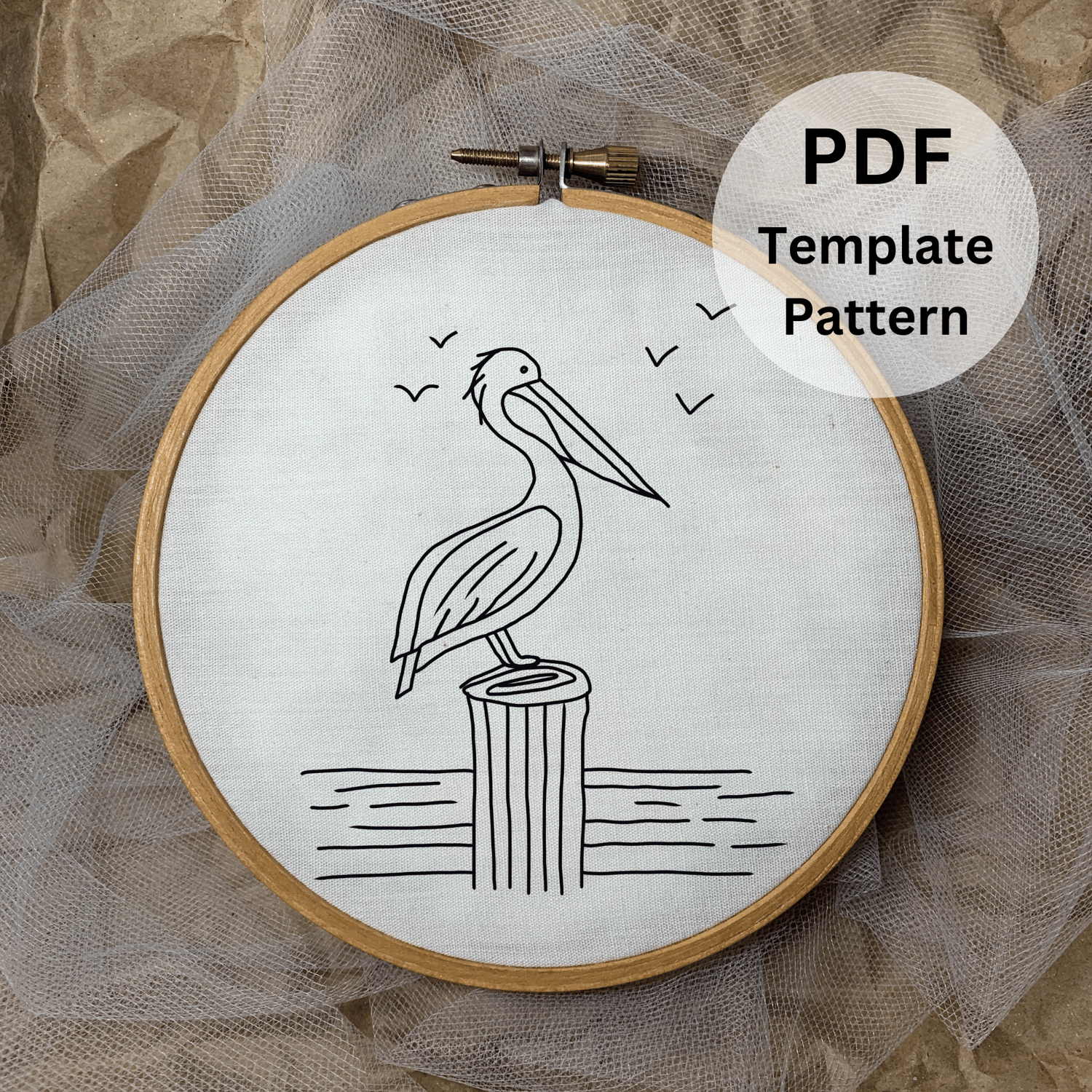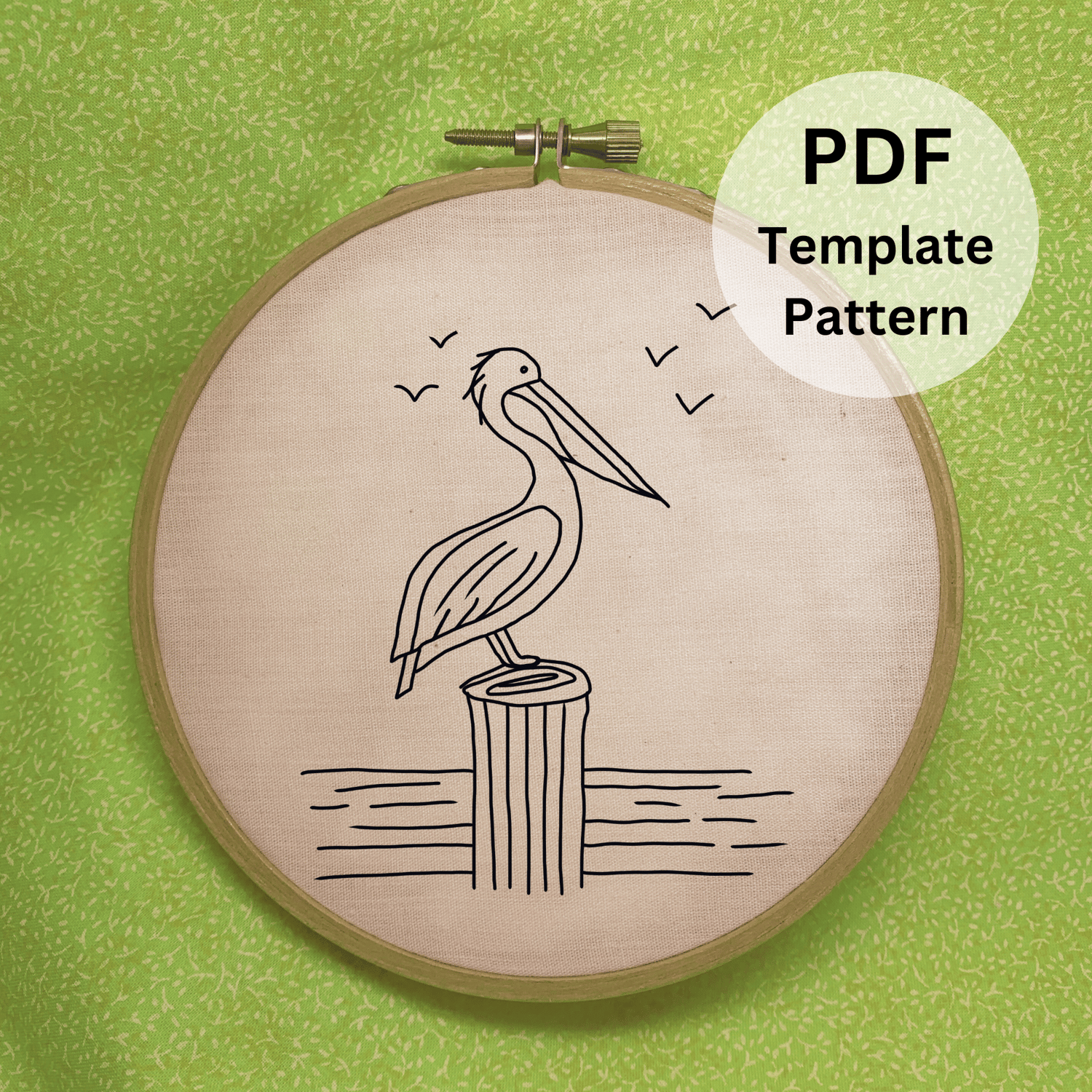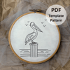 Pelican Embroidery Pattern PDF - Coastal Bird Hand Embroidery Template - Instant Download