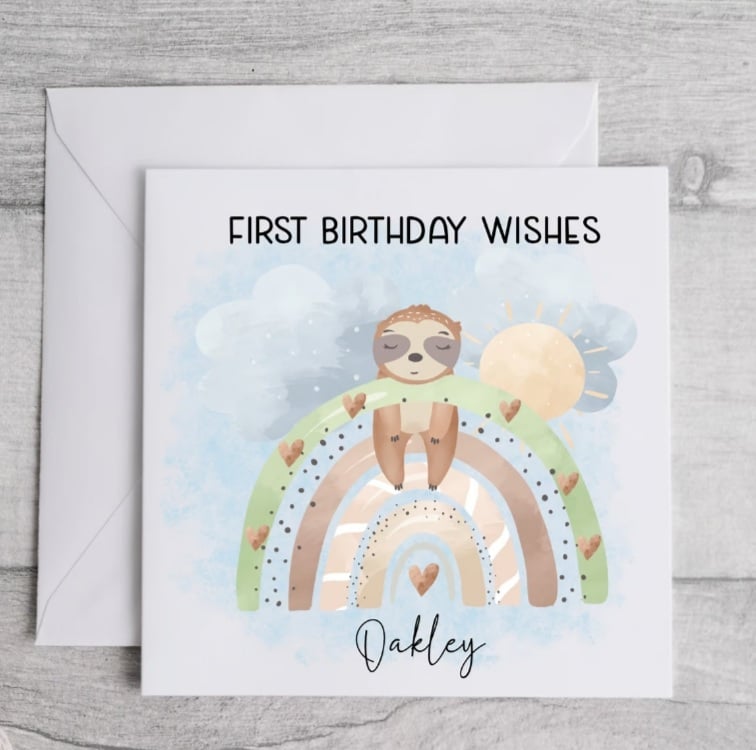 Sleepy Sloth First Birthday Card - Can be personalised