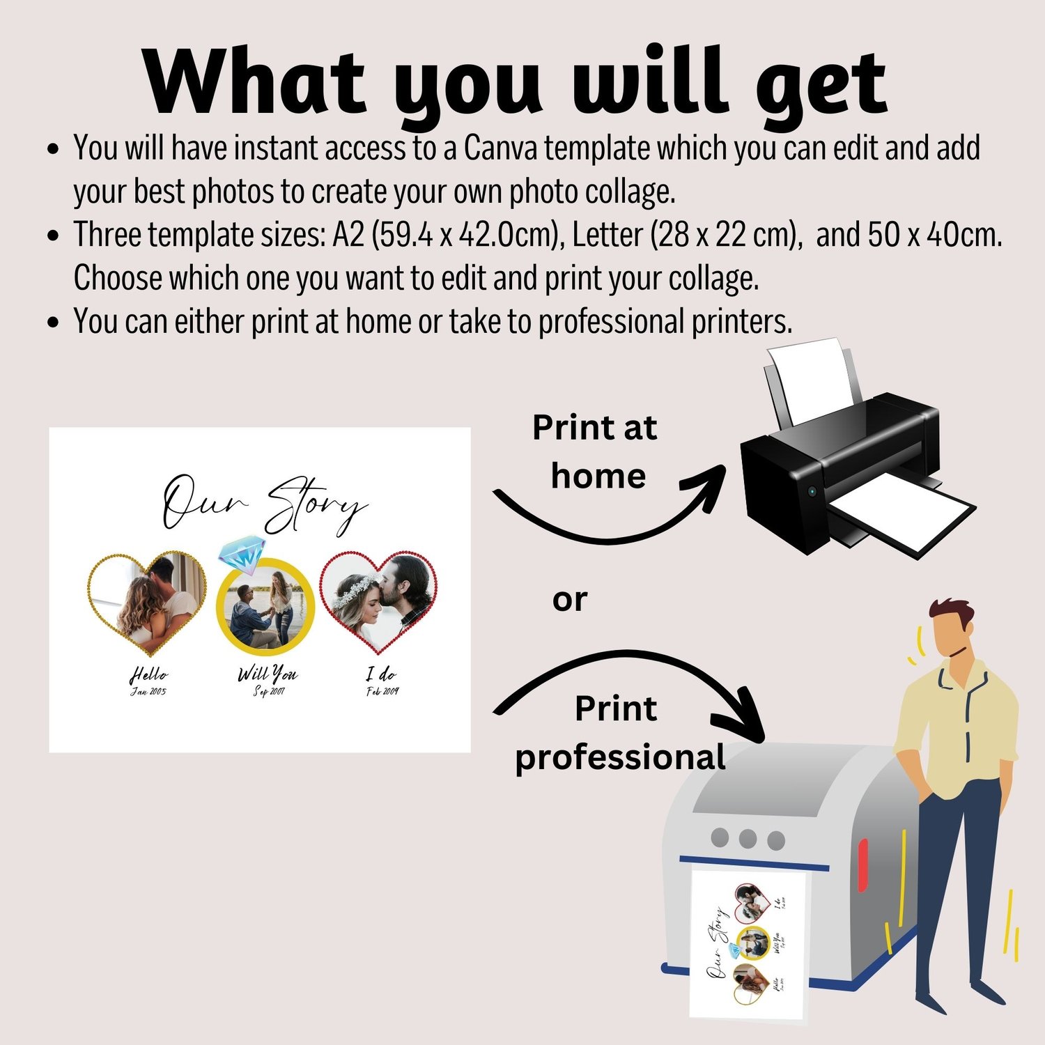 Hello will you I do minimalist, Canva template, editable template, editable Canva template, editable photo collage template, our story timeline, our story began, our story so far, wedding gift for couple personalized, anniversary wall art