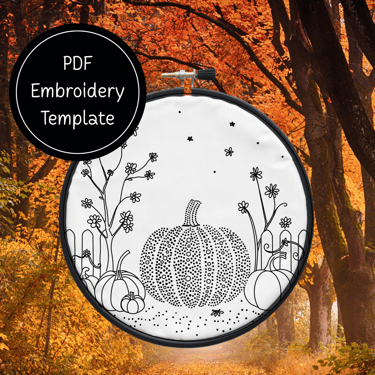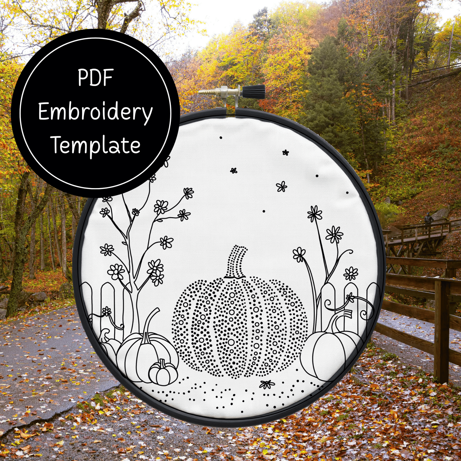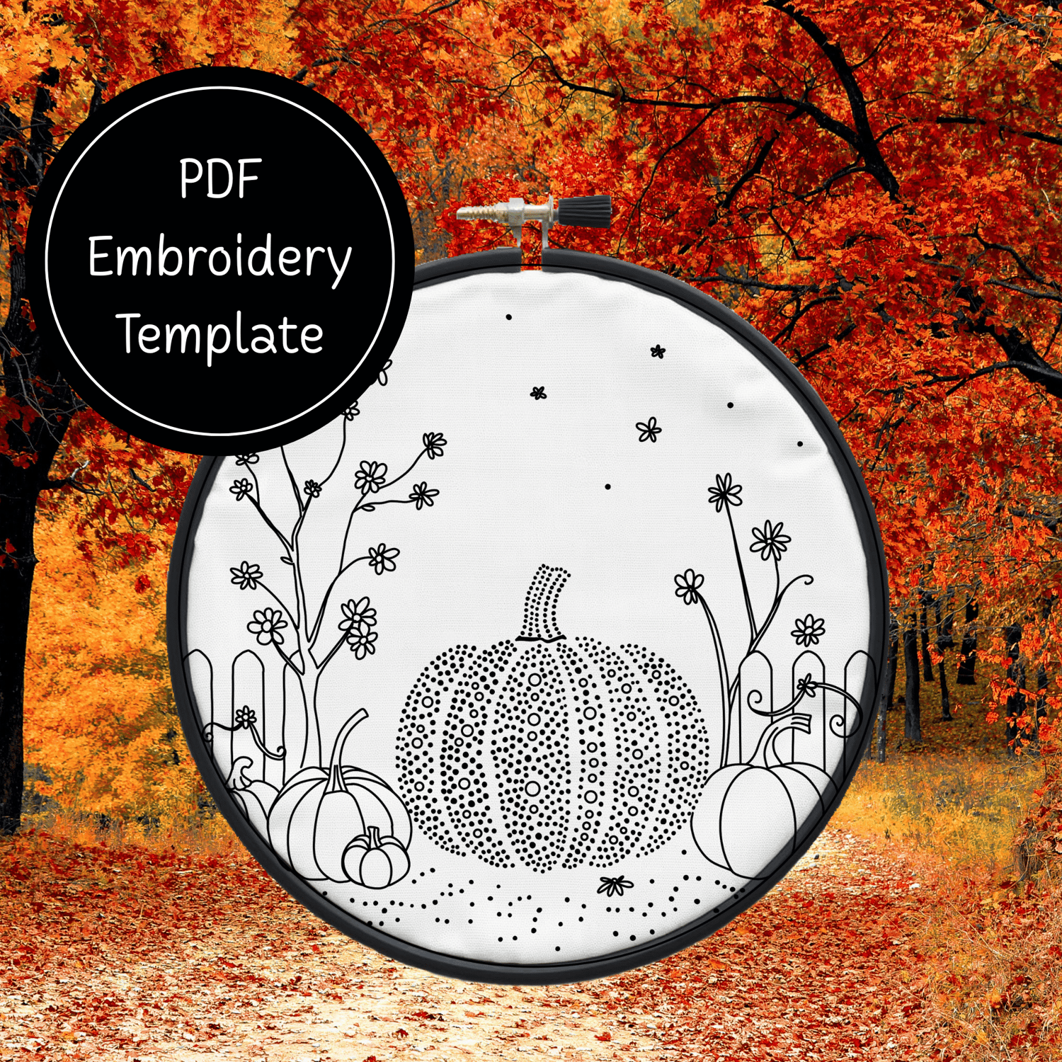 Fall Pumpkin Hand Embroidery Template PDF - DIY Fall Design For Hand Stitching - Instant Download