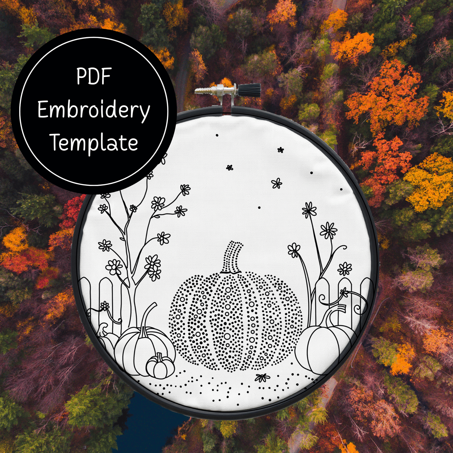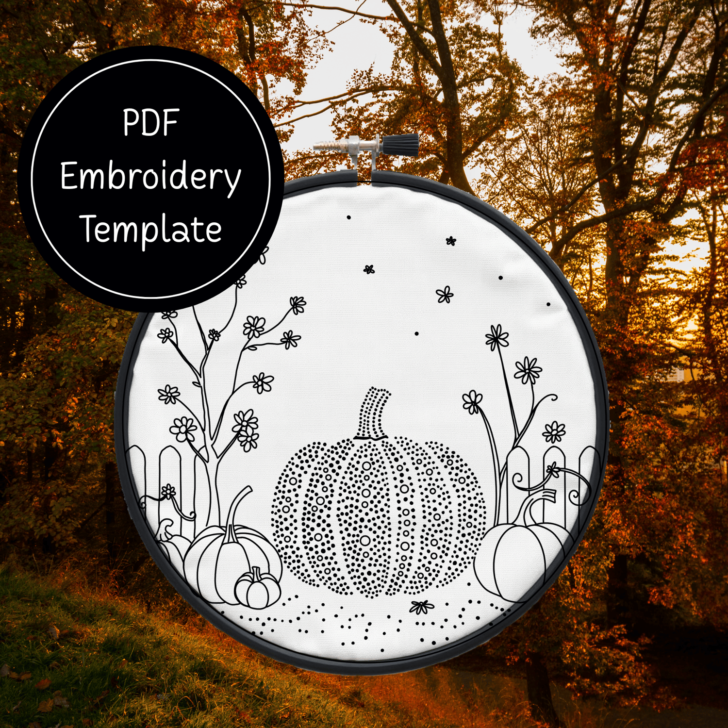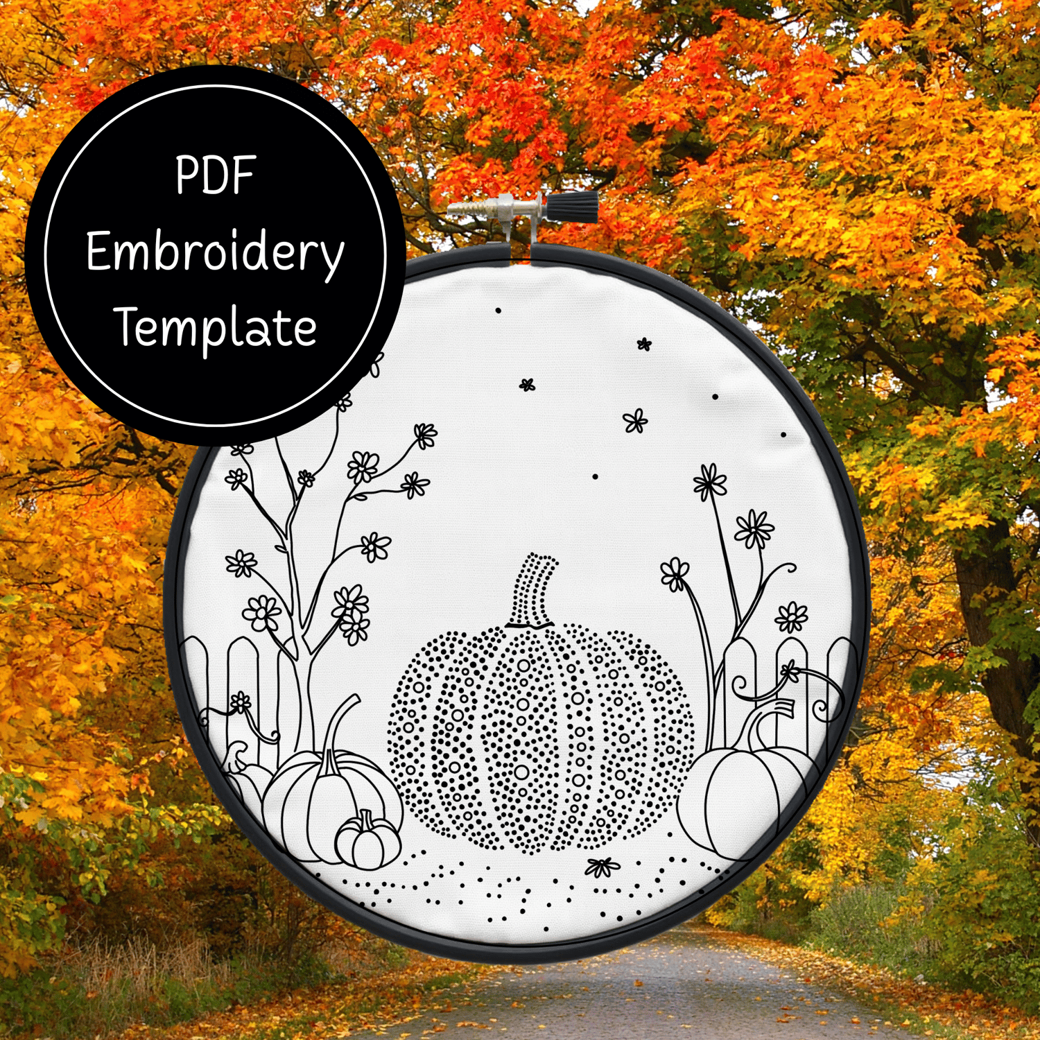 Fall Pumpkin Hand Embroidery Template PDF - DIY Fall Design For Hand Stitching - Instant Download