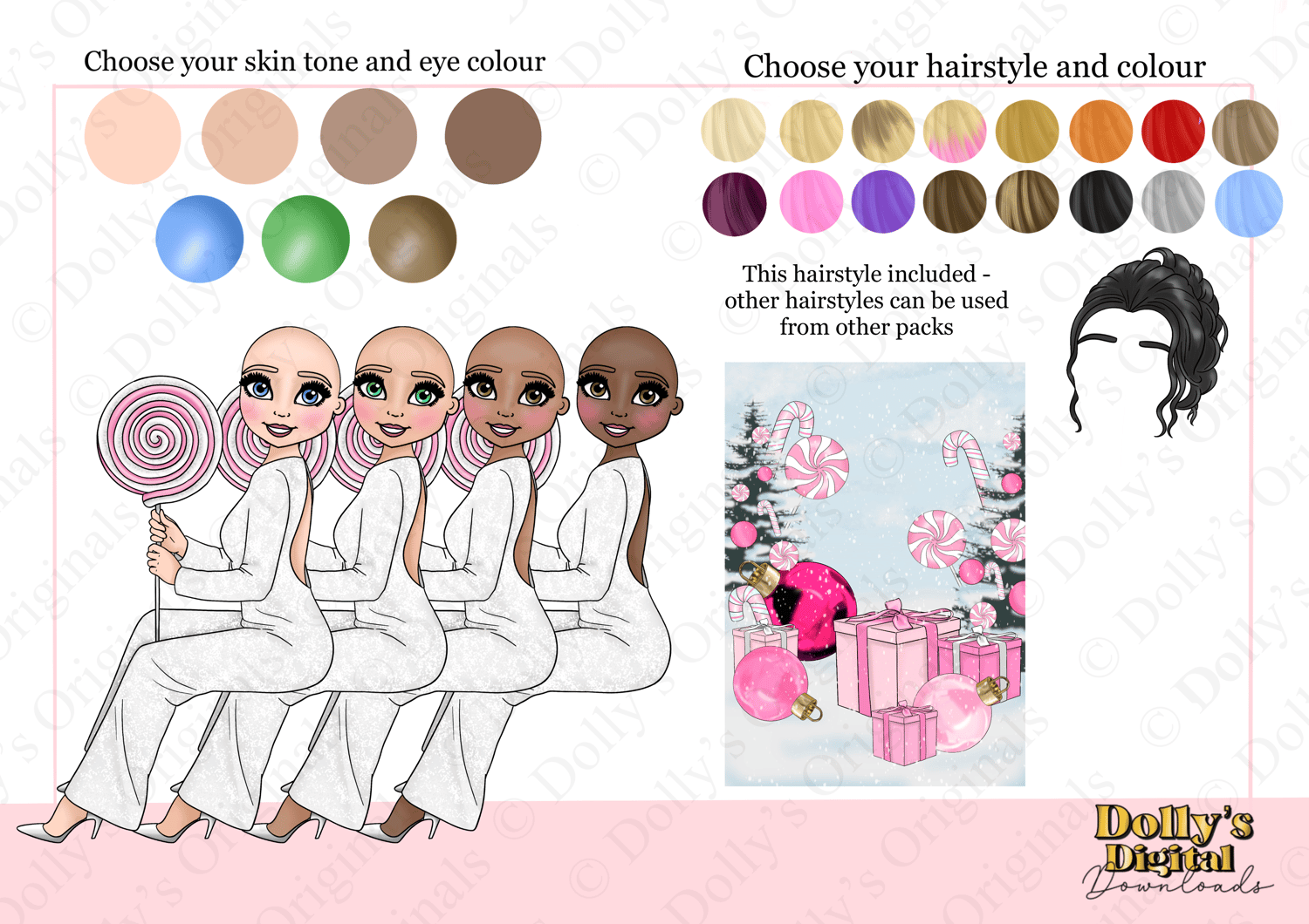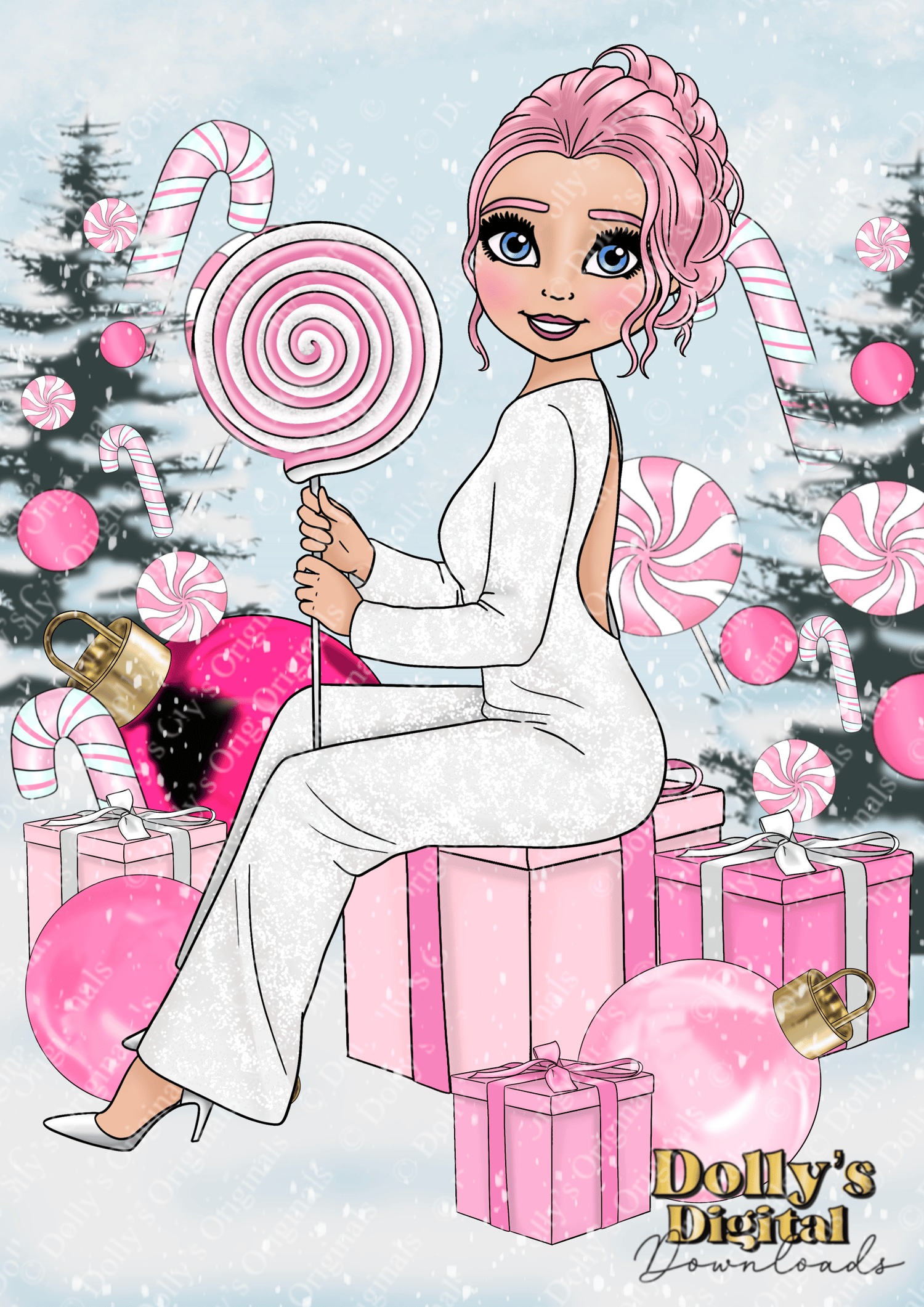 Instant digital download of our Pink Candy Cane Sparkle Dolly Character Bundle PNG (33 PNG’s)