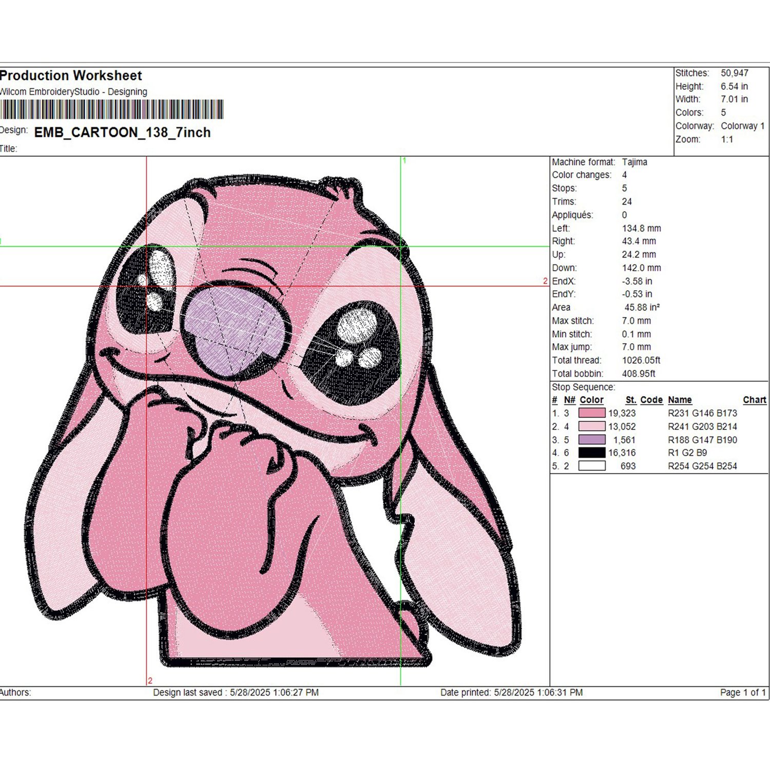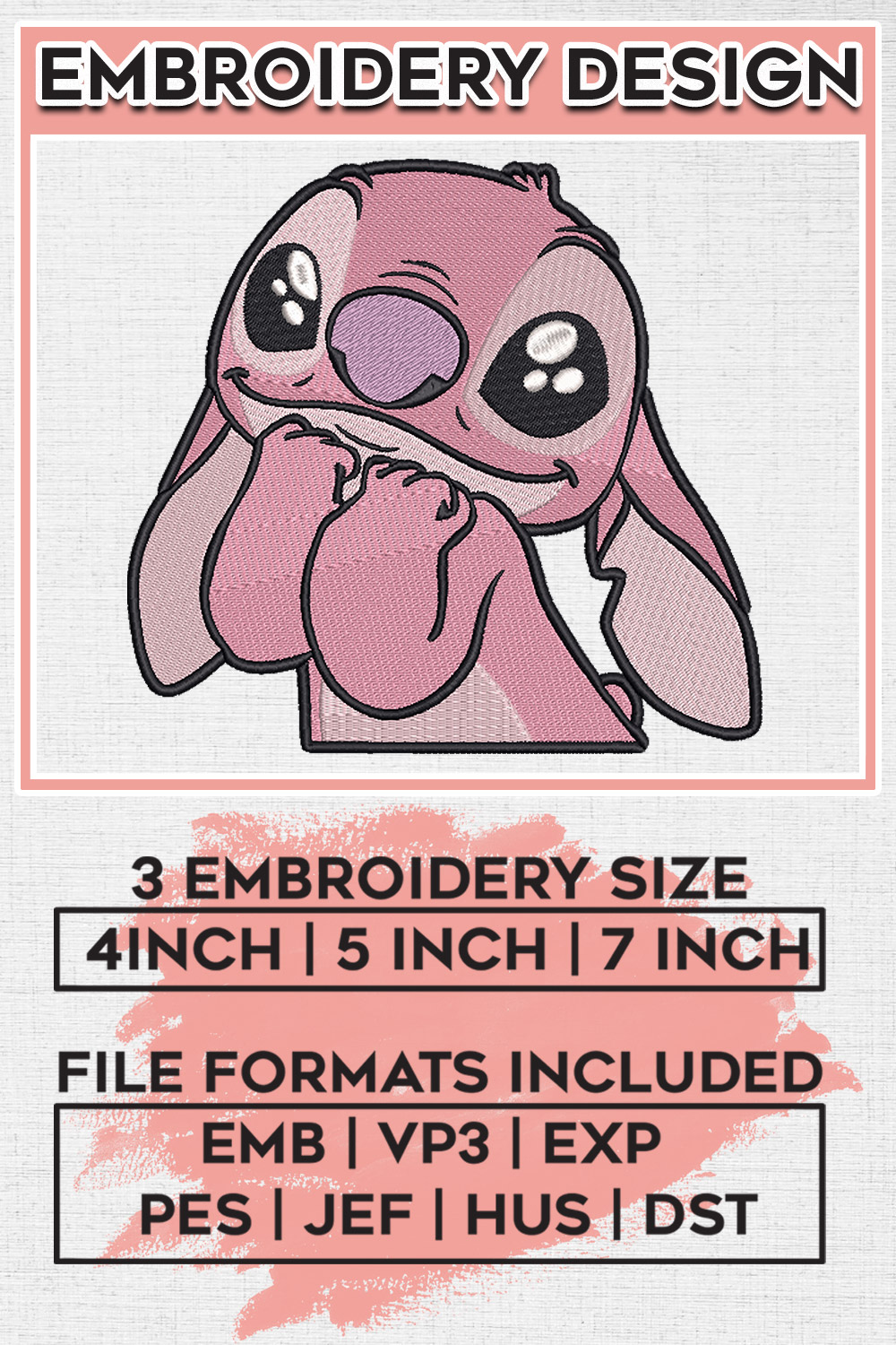 Angel Dis.ney Stitch Girlfriend Embroidery Designs, Lilo and Stitch Machine Embroidery Files, Cartoon Character Machine embroidery designs, Disney, 3 sizes, Digital Download