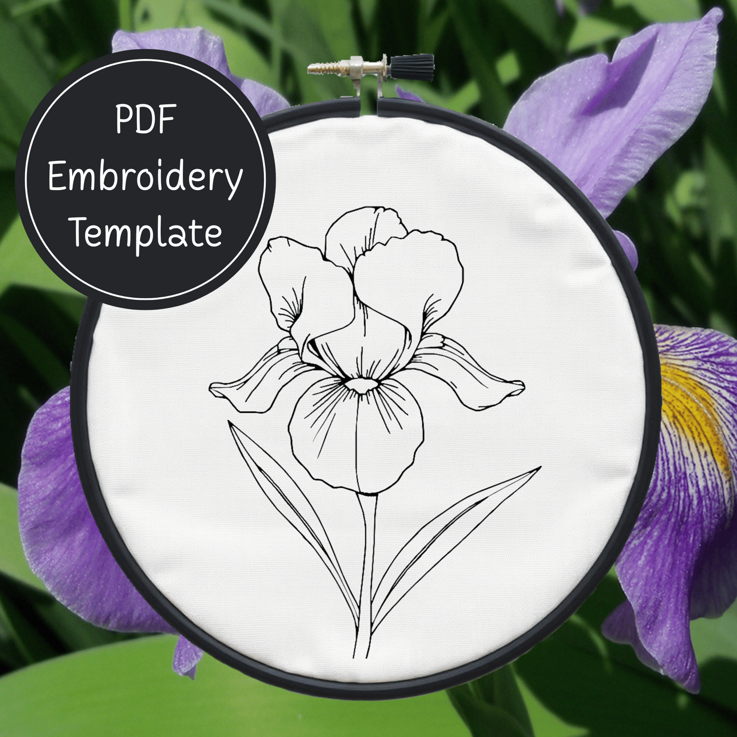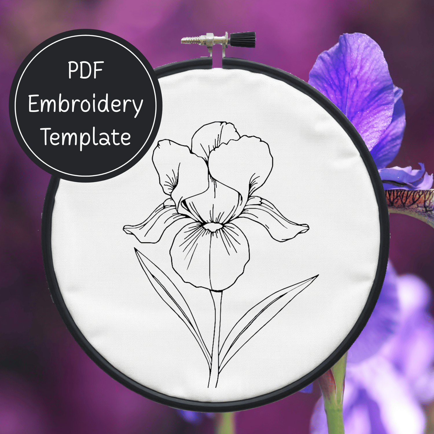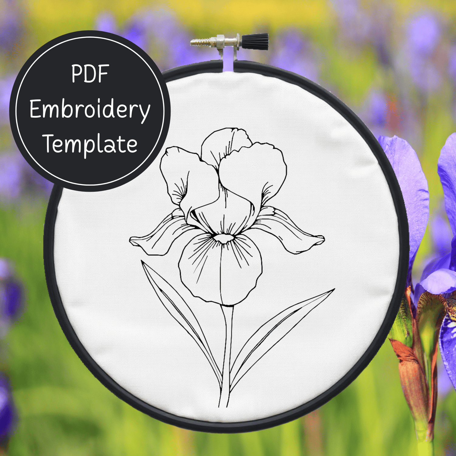 Iris Hand Embroidery Pattern DIY Floral Design For Hand Stitching - Instant Download