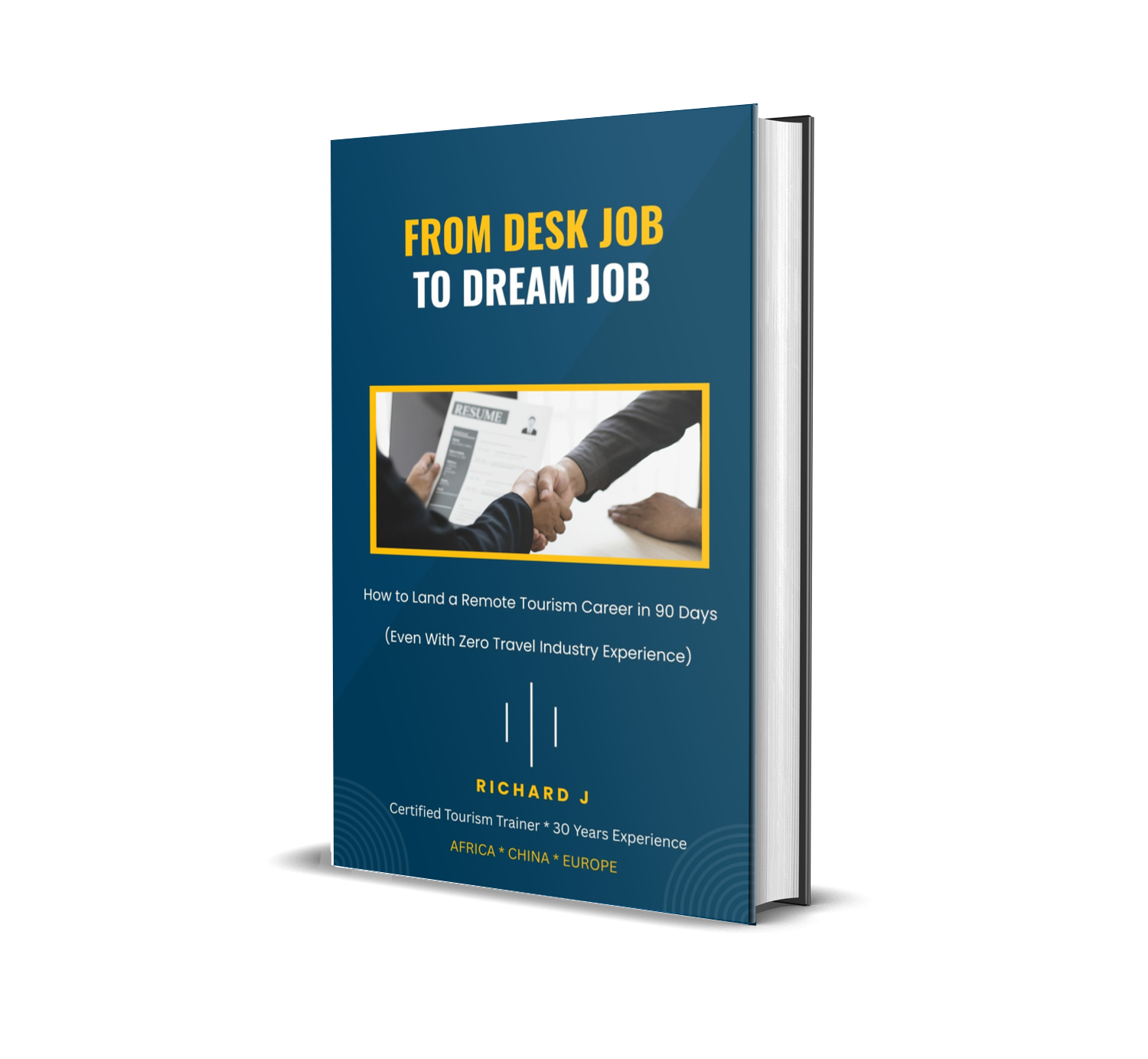 From Desk Job to Dream Job is a practical, step-by-step guide for professionals who want to transition from a traditional desk job into a remote tourism career—without prior industry experience.
