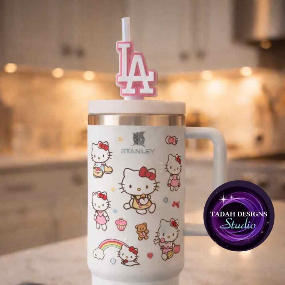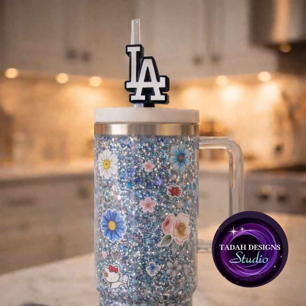 Turn every drink into a bold statement with this iconic LA Straw Topper, designed to sit on perfectly to your favorite Stanley, snow globe, or aesthetic tumblers. Whether you're a diehard fan or just love that classic LA energy, this black and white topper brings clean lines, strong vibes, and instant recognition.