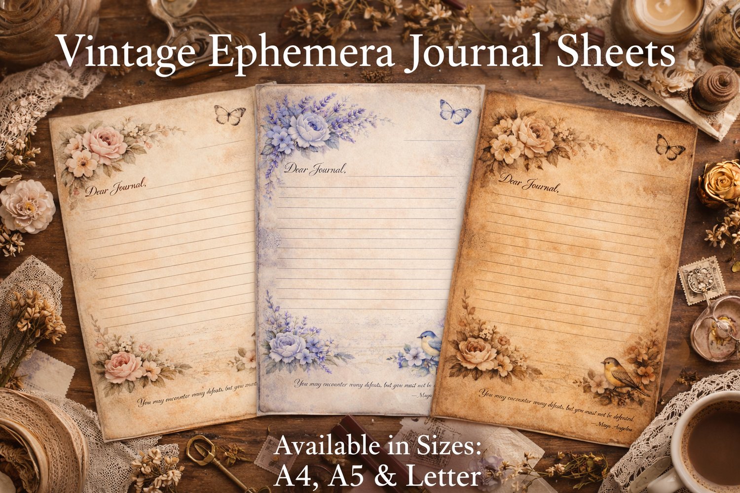 Step into the beauty of slow writing with these Vintage Ephemera Journal Sheets, designed for dreamers, writers, and lovers of antique paper aesthetics.