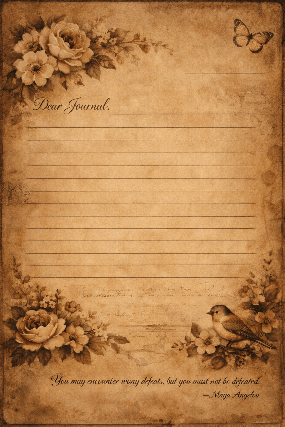 This printable set features delicately aged parchment textures, soft watercolor florals, and timeless ephemera styling that transforms everyday journaling into an intimate ritual.