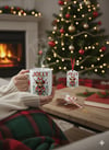 This design features a festive Highland cow in a Christmas sweater, surrounded by ornaments, holly, and bold holiday colors — perfect for t-shirts, hoodies, mugs, tumblers, and more.