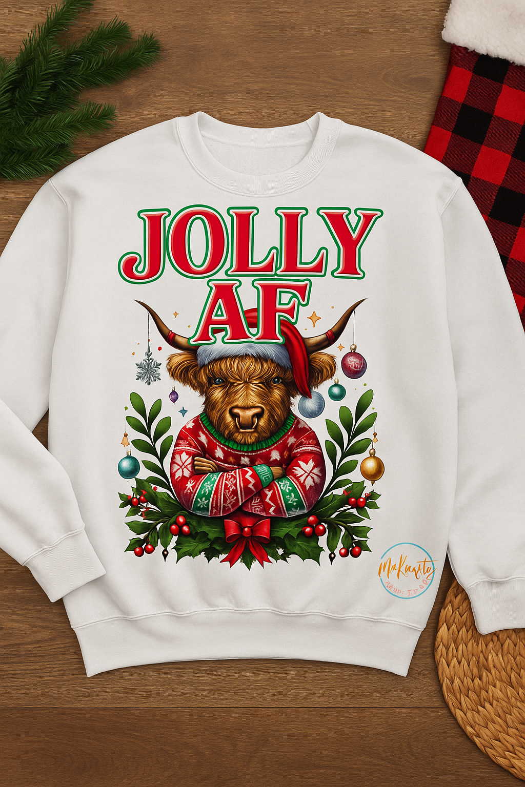 jolly af png, christmas cow png, highland cow clipart, funny holiday png, sublimation christmas, cow sweater png, festive png design, dtf png file, mokrafty digitals