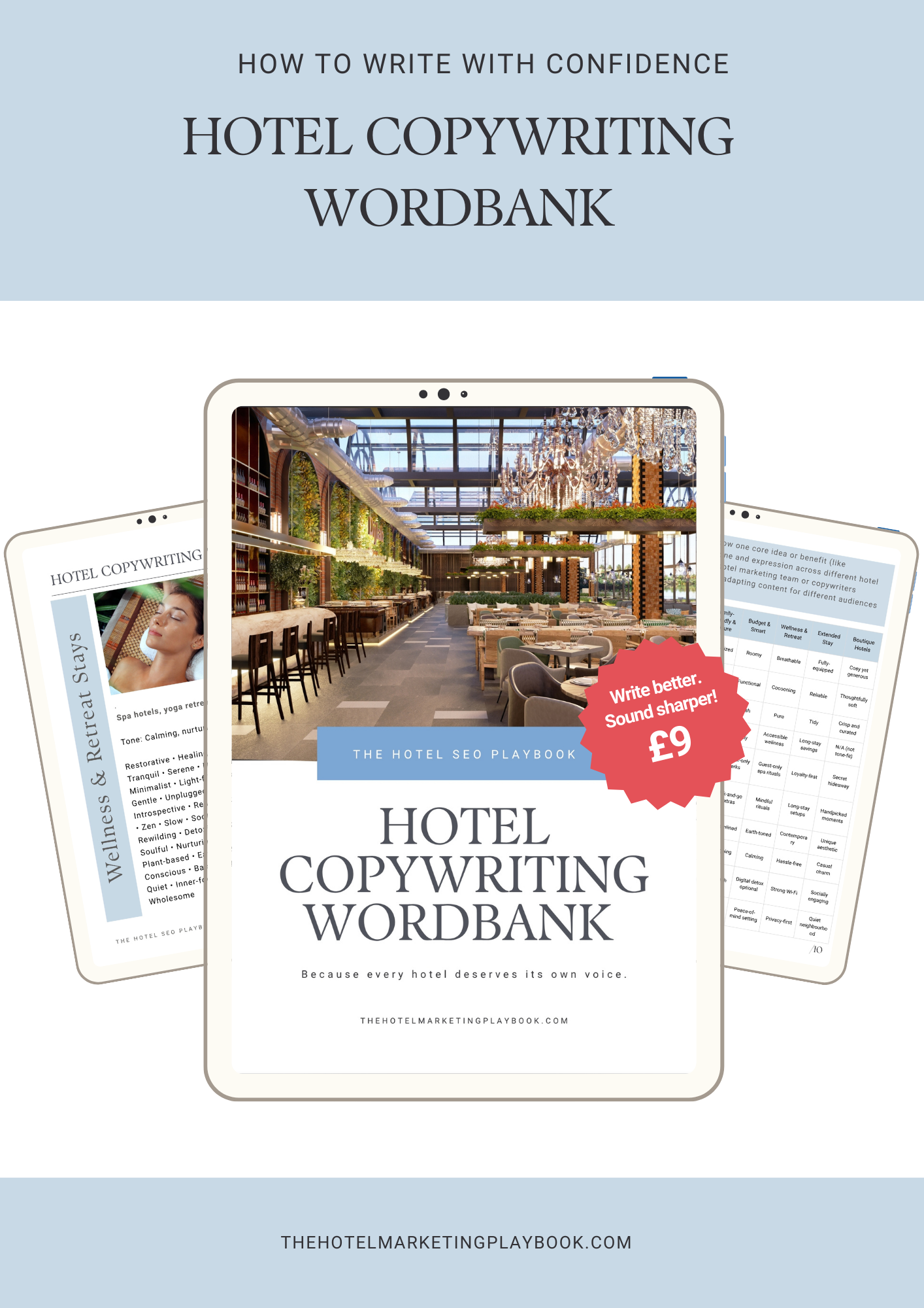 For just £9, get the hotel copywriting wordbank to shape your tone of voice, sharpen your messaging and elevate every piece of content. From your homepage to your latest campaign, this guide helps your words work harder.