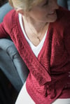 Sometimes the heart yearns for a change. Not necessarily a drastic one, simply a break from routine, or a new adventure, or maybe just the freedom to act on a whim. With its unique construction coupled with its versatile style, Breaking the Waves embodies our heart’s desire for something different. Beginning with a simple top-down raglan construction, the pattern then literally changes direction, and the lacy fronts are worked sideways, providing a welcome break from the usual without being overly complicated. The finished cardigan can be worn wrapped or open, dressy or casual – numerous possibilities to suit your every mood.