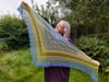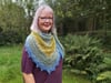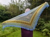 The La Caleta shawl is inspired by the blue seas and the golden sands off the La Caleta beach of the Southern Costa Blanca in Spain. Relaxing garter stitch is combined with an easy lace pattern in this triangular shawl.